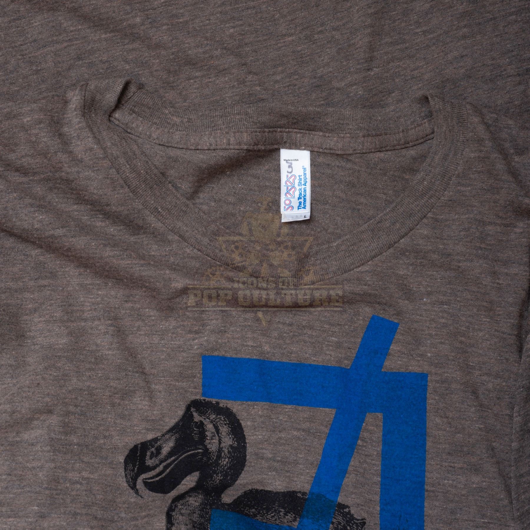 This t-shirt was acquired by the production for use by Malcolm Barrett as “Rufus Carlin” in the season one episode titled “Karma Chameleon”. The t-shirt features a “large bird” graphic on the chest.