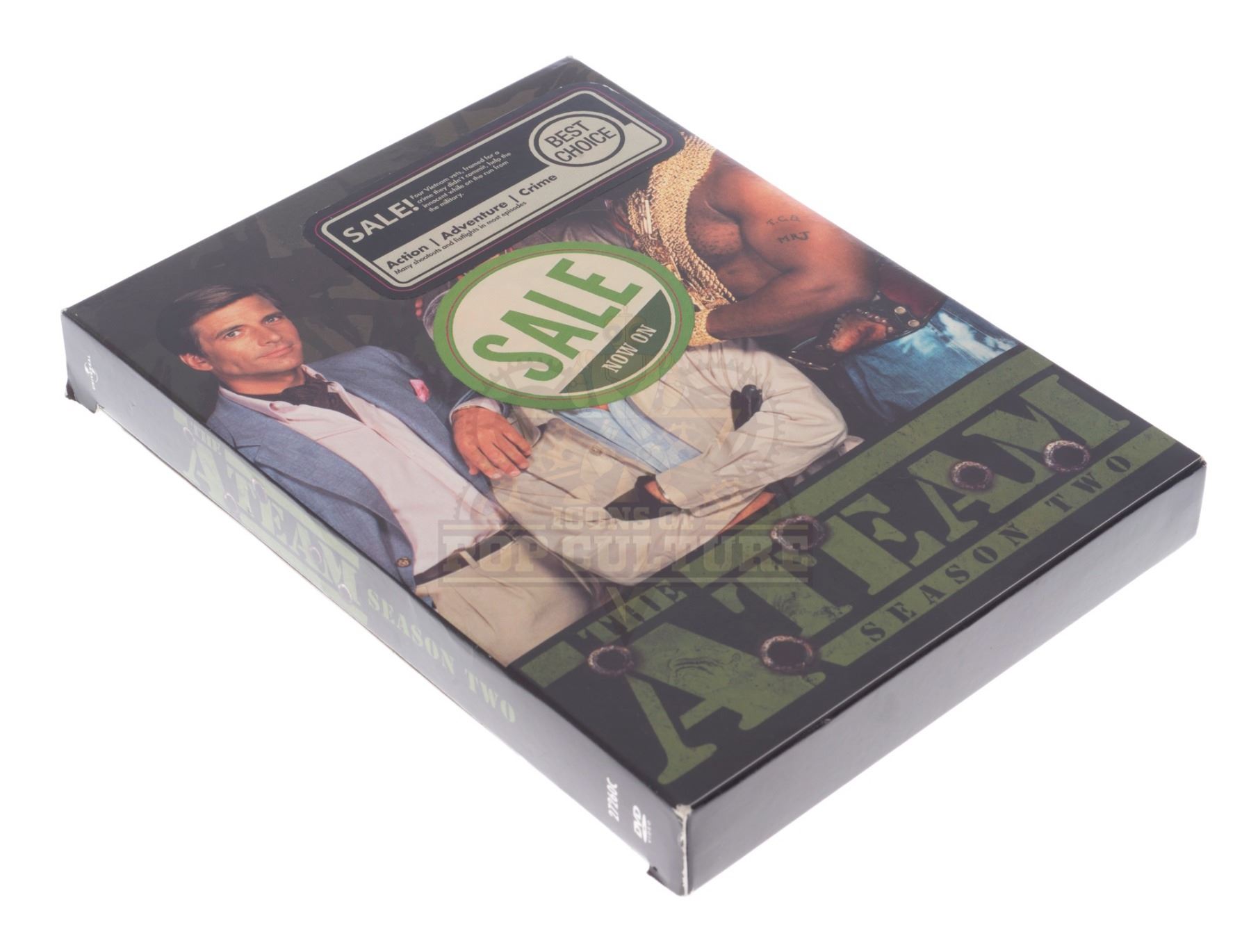 This “The A-Team” season two DVD set was acquired by the production for use by Malcolm Barrett as “Rufus Carlin” in the season one episode titled “The Red Scare”. The DVD set consists of three DVDs, with inner and outer covers.