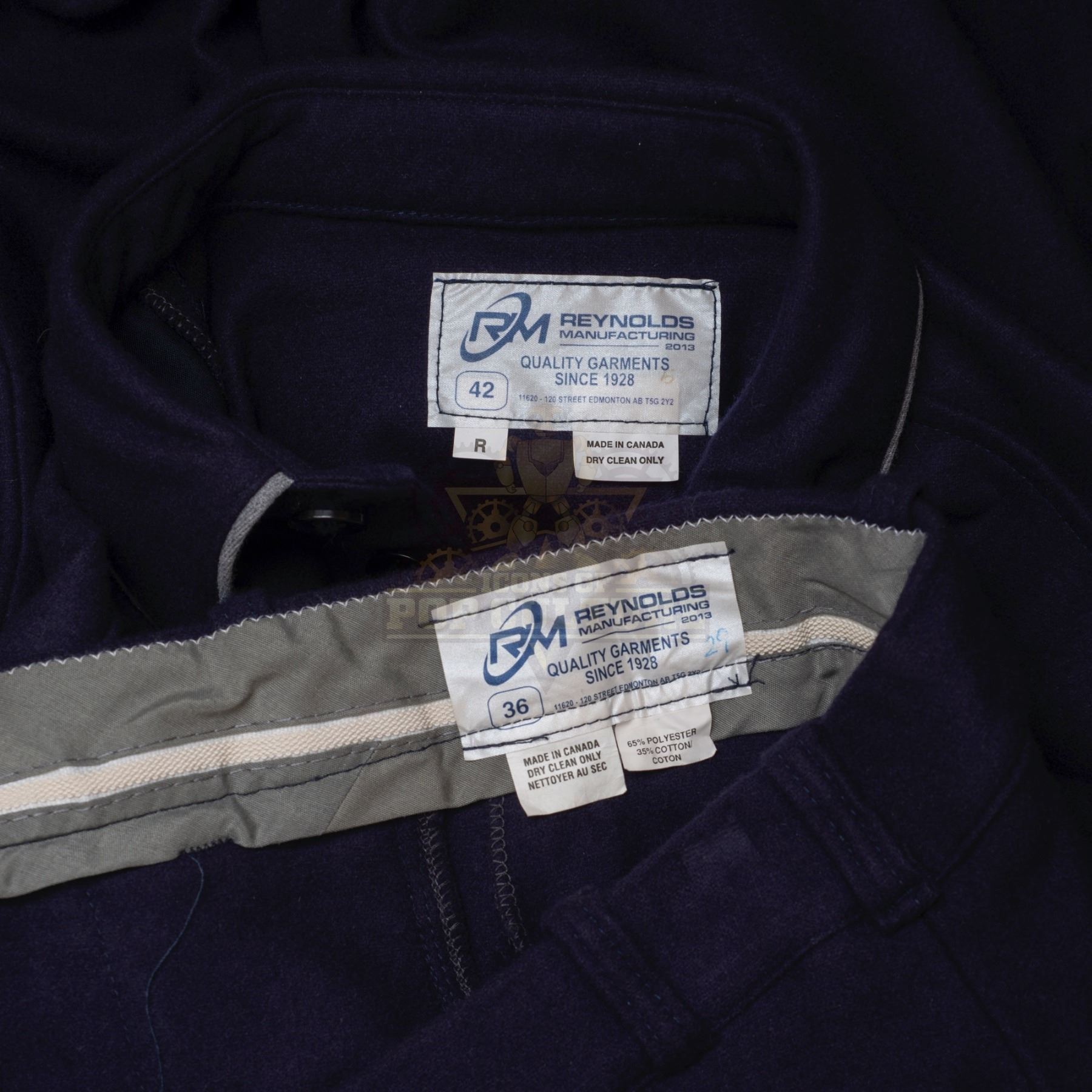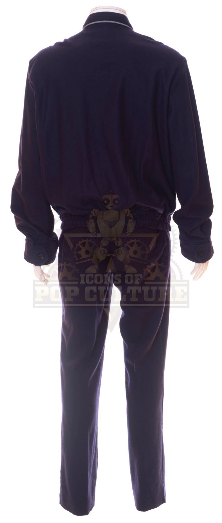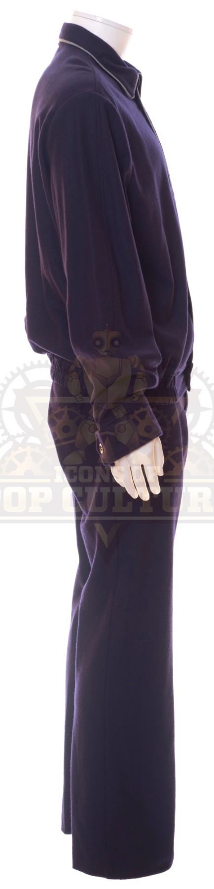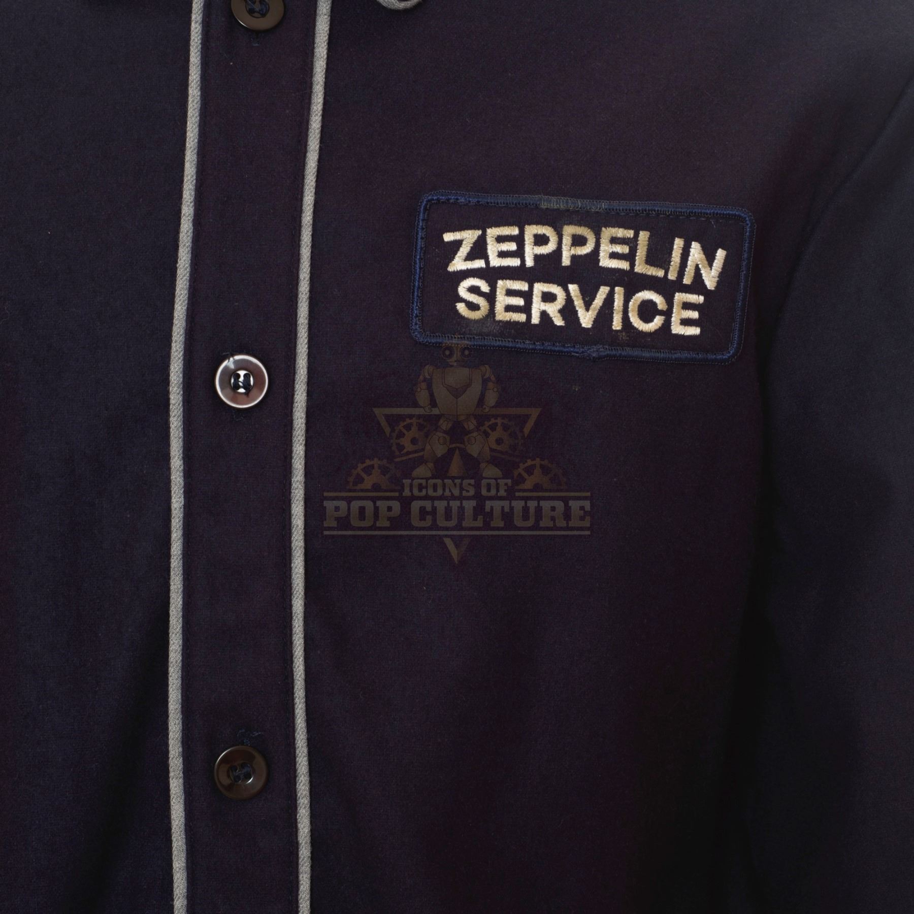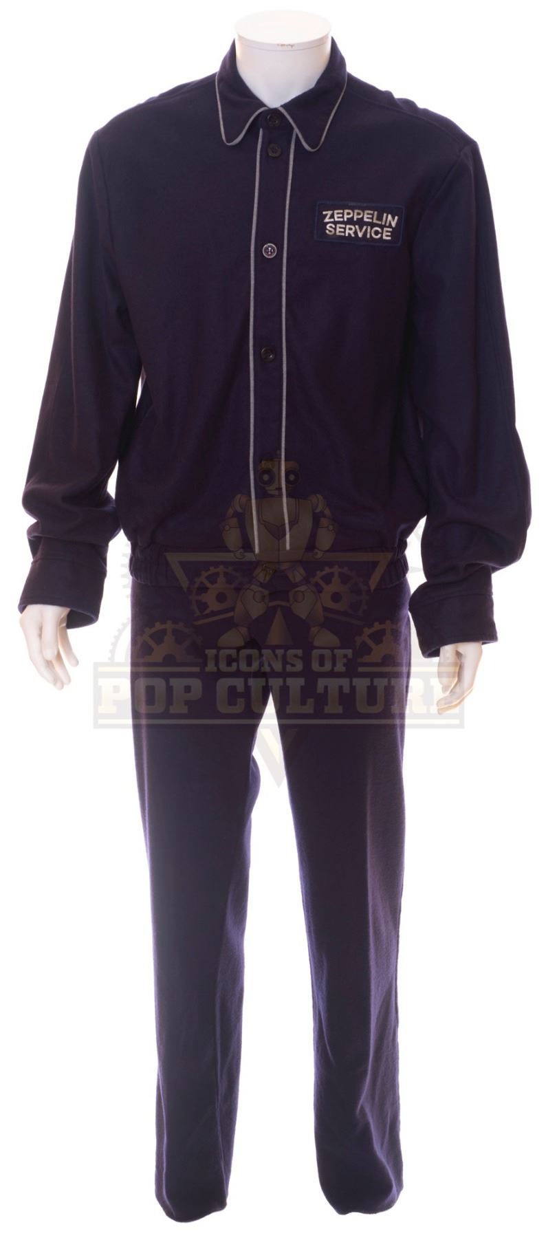 This outfit was acquired by the production for use by various actors as the “Zeppelin Service Crew” in the season one episode titled “Pilot”. The outfit consists of a dark blue button front jacket that features light blue piping and a “Zeppelin Service” patch applied to the left chest and a pair of matching pants. As the Hindenburg lands Lucy looks on as a “Zeppelin Service” crewmember can be seen helping passengers off the airship.