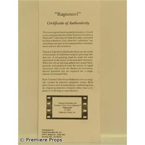 Timeless Tales from Hallmark - Animation Cels - This lot includes 1 cel and 1 hand drawn sketch featuring Rapunzel. This item from Filmation Studios is matted and measures approximately 17" x 27". Includes an original Certificate of Authenticity. This item is oversized and will require additional shipping charges. Please e-mail for shipping rates before bidding. Make this classic collectible part of your memorabilia colelction today! (FLM3020)