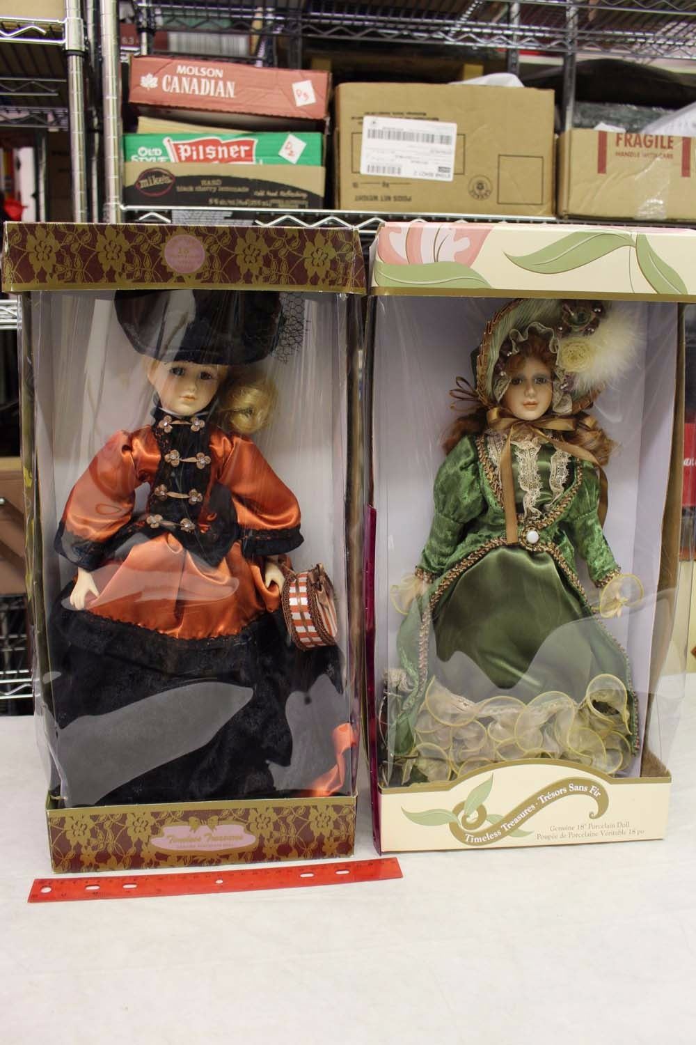 Timeless Treasures Genuine 18" Porcelain Dolls(2)w/Stand