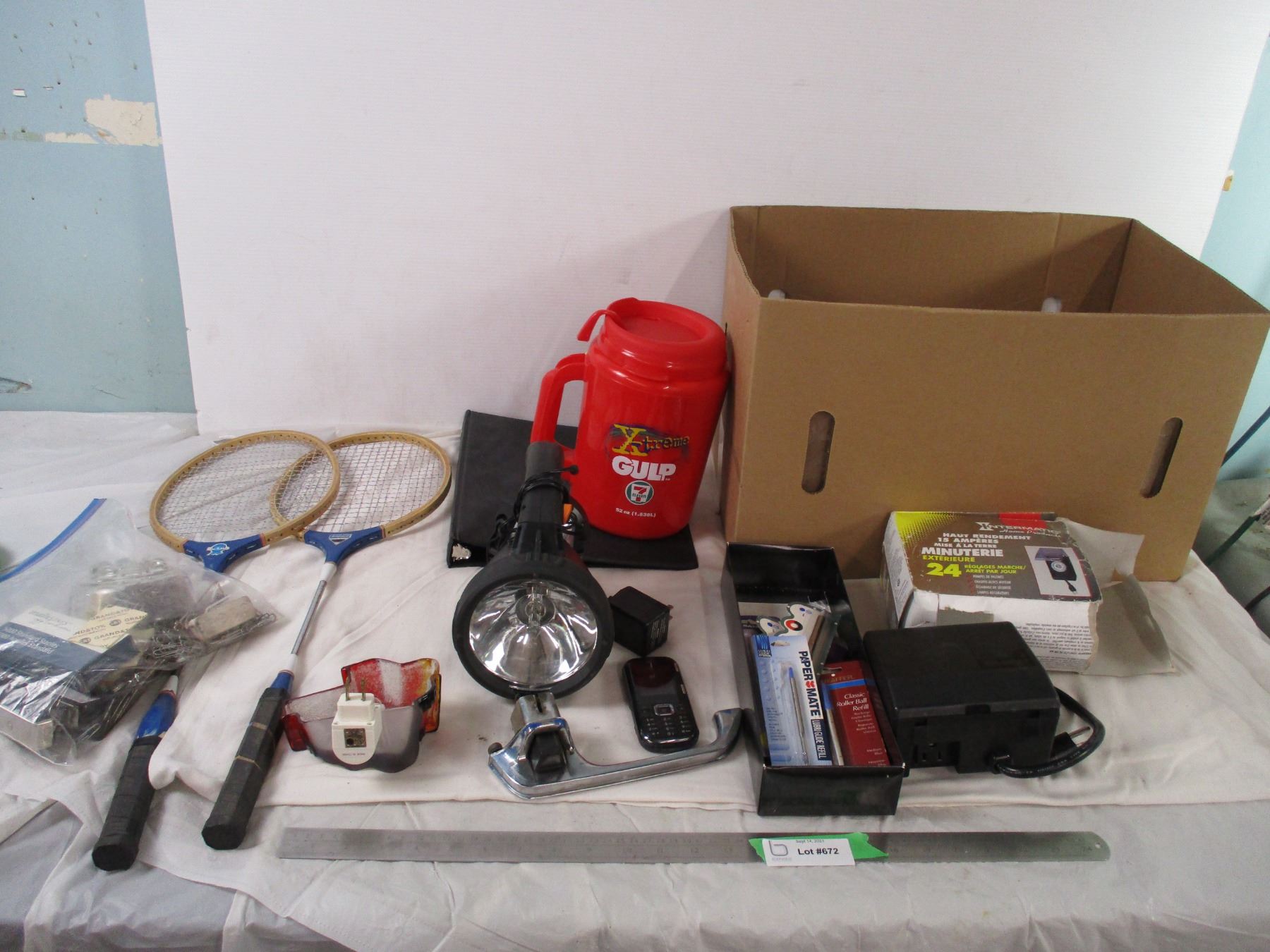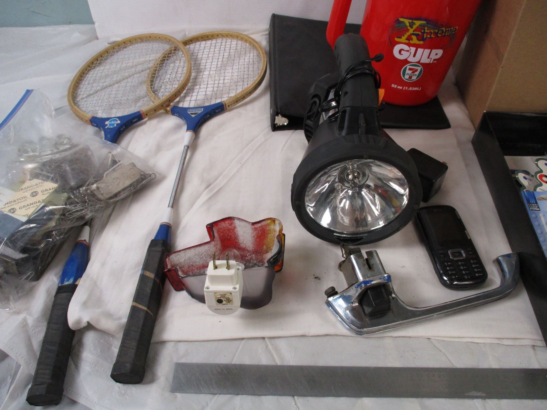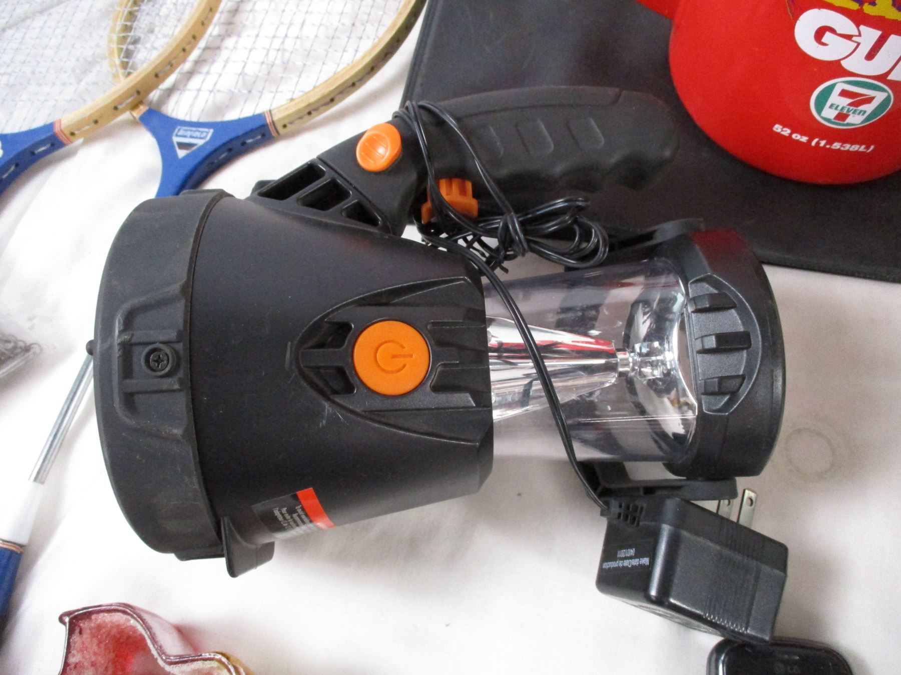Timer, flashlight, kids racket, plus misc