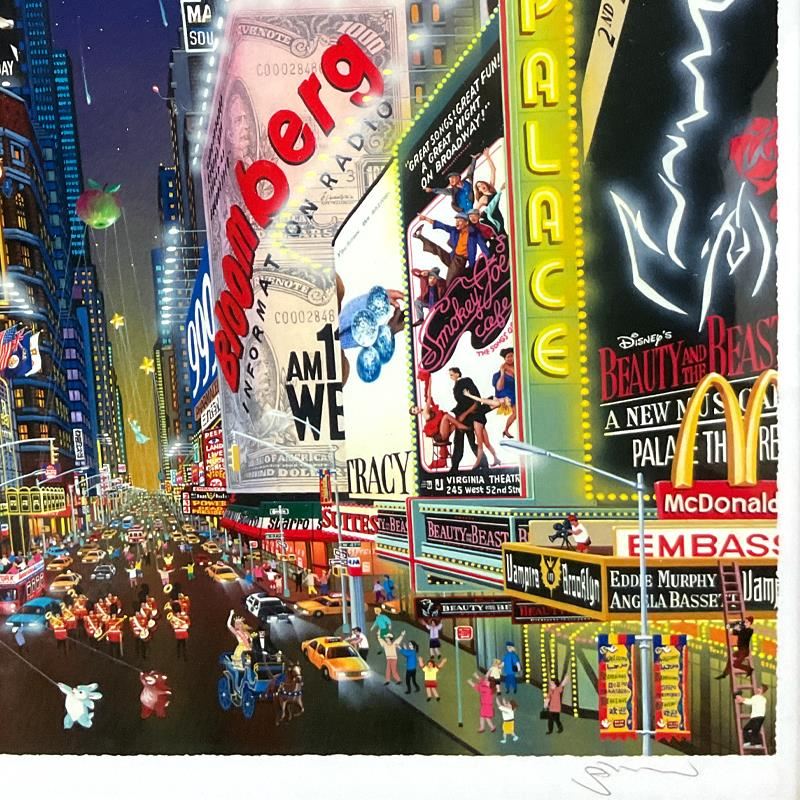 "Times Square Parade" is a limited edition artist proof on paper with hand drawn remarque by Alexander Chen, numbered 11/95 and hand signed by the artist. This piece comes framed. Includes Letter of Authenticity. Measures approx. 30" x 37.5" (frame), 18" x 25" (image). There is minor wear on the frame.