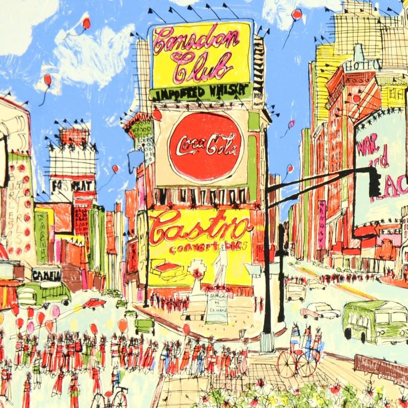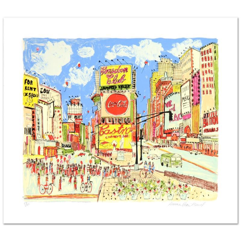"Times Square" is a limited edition serigraph on paper by Susan Pear Meisel, numbered and hand signed by the artist! Includes Certificate of Authenticity! Measures approx. 35" x 31" (with border), 29" x 25" (image).