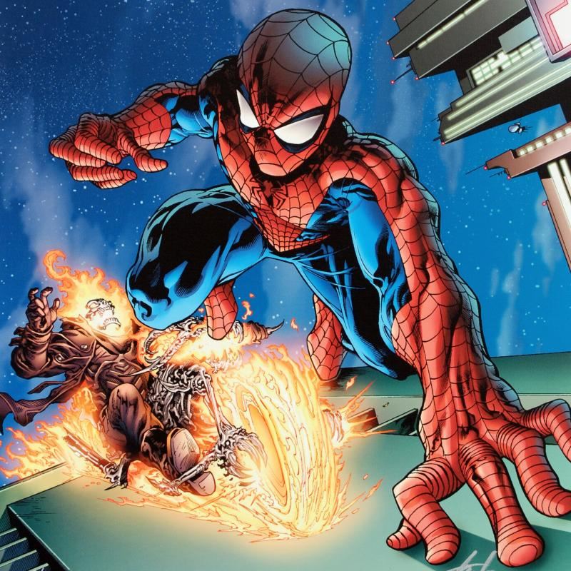 A piece of comic book history, this limited edition print, drawn by Tom Raney, depicts Ghost Rider and Spider-Man in battle. Tom Raney is an American comic book artist, known for illustrating titles as Annihilation Conquest, Alpha Flight, Ultimate X-Men and Uncanny X-Men for Marvel Comics, DV8 and Stormwatch for Image Comics, and Outsiders for DC Comics. "Timestorm 2009/2099 #4" is a limited edition giclee on canvas by Tom Raney presented by Marvel Comics, numbered and hand signed by the great Stan Lee! Includes Certificate of Authenticity! Measures approx. 18" x 27" (image).