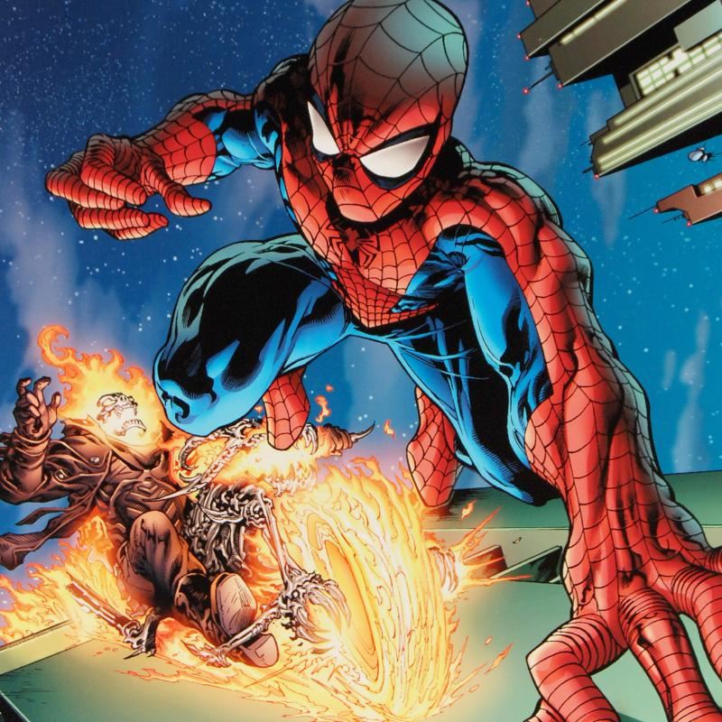A piece of comic book history, this limited edition, from original art by Tom Raney, depicts Ghost Rider and Spider-Man in battle. Tom Raney is an American comic book artist, known for illustrating titles as Annihilation Conquest, Alpha Flight, Ultimate X-Men and Uncanny X-Men for Marvel Comics, DV8 and Stormwatch for Image Comics, and Outsiders for DC Comics. "Timestorm 2009/2099 #4" is an extremely limited edition giclee on canvas by Tom Raney presented by Marvel Comics, hand signed by the great Stan Lee and numbered out of only 10! This piece has been custom framed and ready to hang. Includes Certificate of Authenticity! Measures approx. 25" x 34" (with frame); 18" x 27" (image).