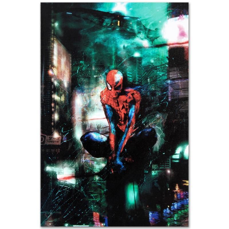 A piece of comic book history, this limited edition, from original art by Christopher Shy, depicts an epic image of Spider-Man. A freelance science fiction and fantasy artist, Christopher Shy has also drawn his own graphic novels. "Timestorm" is a limited edition numbered giclee on stretched canvas by Christopher Shy presented by Marvel Comics. This piece comes gallery wrapped. Includes Certificate of Authenticity! Measures approx. 18" x 27" (image); 1.5" (depth). This item requires special handling and may have a longer than usual turnaround.