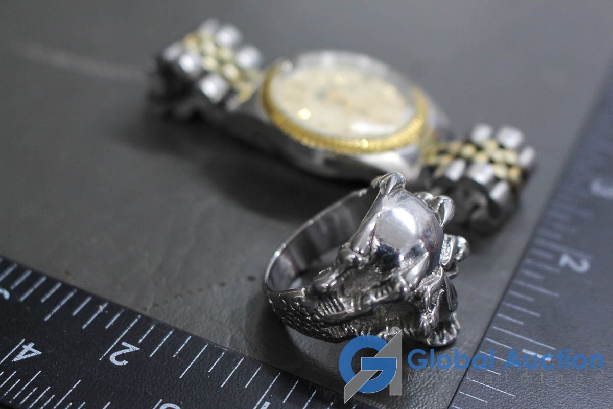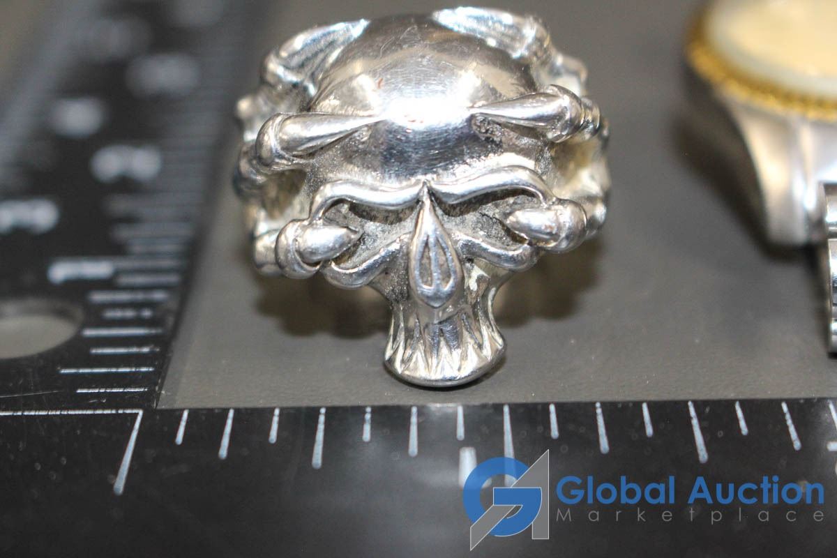Timex Men's Watch Metal Strap & Men's Skull Ring, Silver Colour