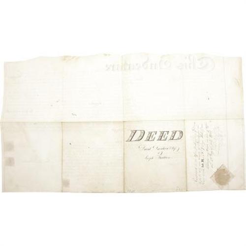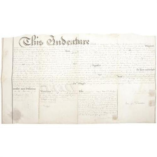 <B>Timothy Matlack. Continental Congress Delegate, Document Signed</B></I> “<I>T Matlack</B></I>”. One page, 25.5” x 14”, on vellum, dated July 21, 1814, an indenture for land near Philadelphia, complete with all seals and endorsements, with fold creases, else very good. Timothy Matlack was a member of the Council of Safety in Philadelphia before and during the American Revolution. He engrossed the official copy of the United States Declaration of Independence on display in the National Archives.<BR><BR><BR><b>Shipping:</b> Flat Material, Small (<a target="_blank" href="http://www.heritageauctions.com/common/shipping.php">view shipping information</a>)