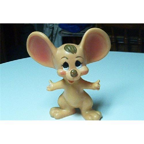 Timothy Mouse (DUMBO). Disney Bank. Large ears. Slot for putting coins in. Take head off to get money out. Sticker still attached which states: I Am A Bank-Remove Head To Extract Coins. Timothy stands 10 inches tall. Unusal to find Timothy in this excellent condition. Made by ROY DES. OF FLA. IS DISPLAYED ON THE BACK OF HIS HEAD AND ALSO ON THE BOTTOM OF HIS LEFT FOOT. Rosey cheeks, ears, and mouth. He has two upper teeth. Brown har and nose. The eyes are black at the top and hite on the bottom half. Excellent Timothy Mouse Bank.