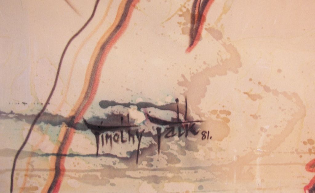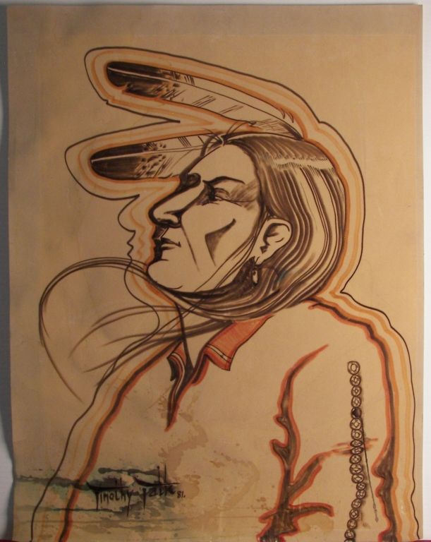 Timothy Talk, Watercolor Timothy Talk, Watercolor in velvet paper, stylized Indian, Severe water damage (see photo # 2) 26" x20", Signed lower left,(8163)