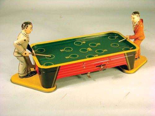 Tin Billiards Wind-Up Toy Action, no makers name, Exc. Condition, 14 x 6 x 5 inches.