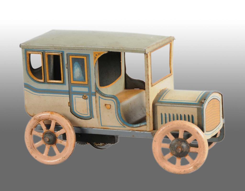 German. Working. One of the cars usually found in the Bing Garage Set. Some pitting to wheels with rust on key. Needs to be cleaned. Condition (Very Good). Size 5 - 1/2" L.