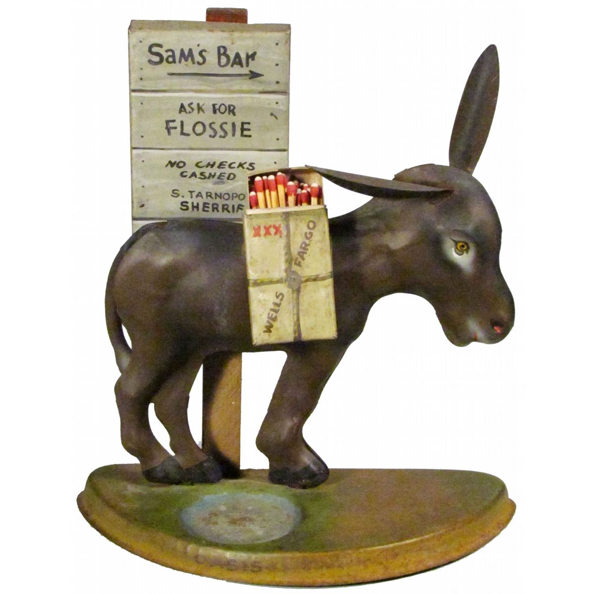 Tin Burro Match Holder. Very good original condition. 9 X 10 X 4 inches.