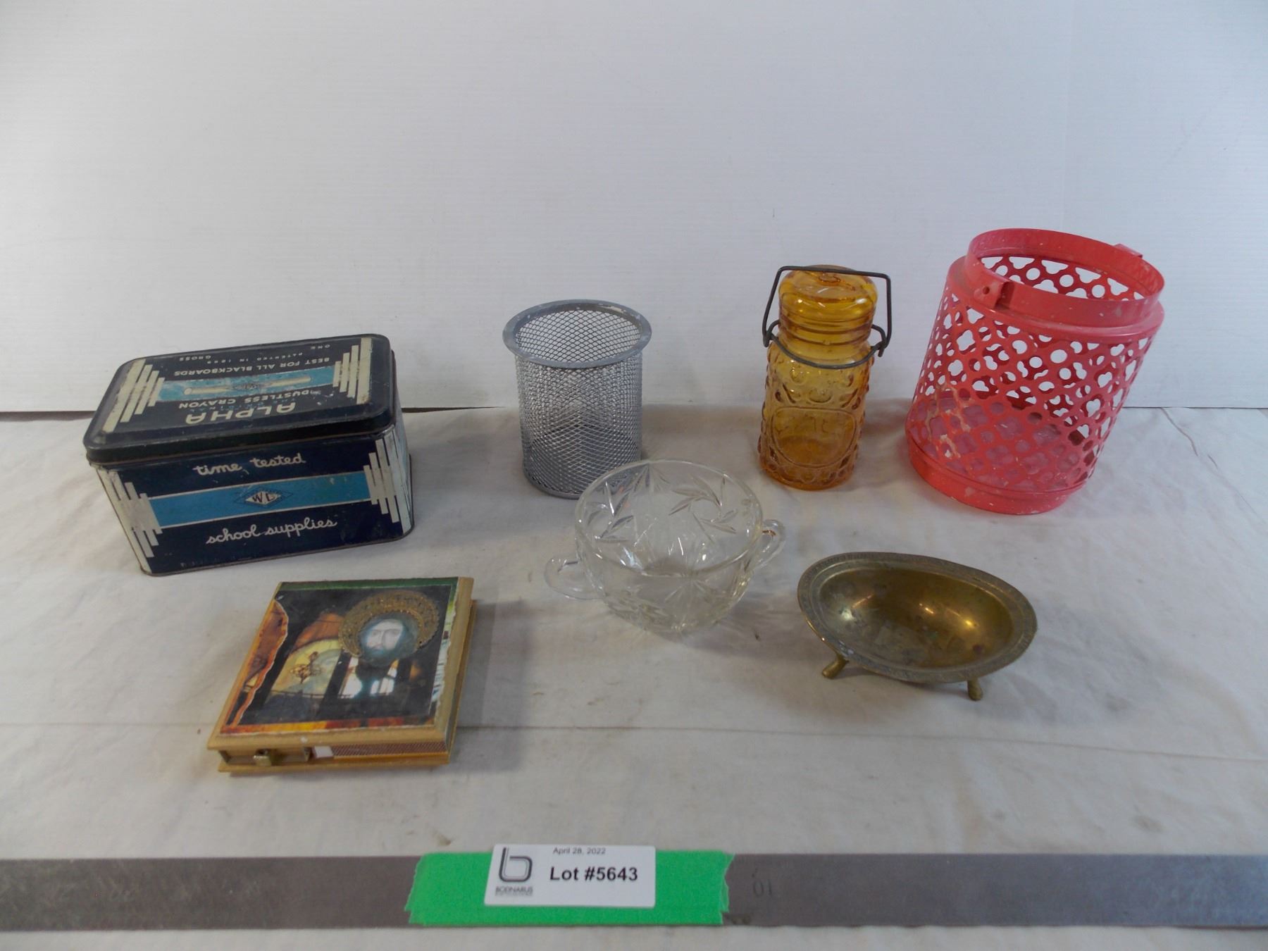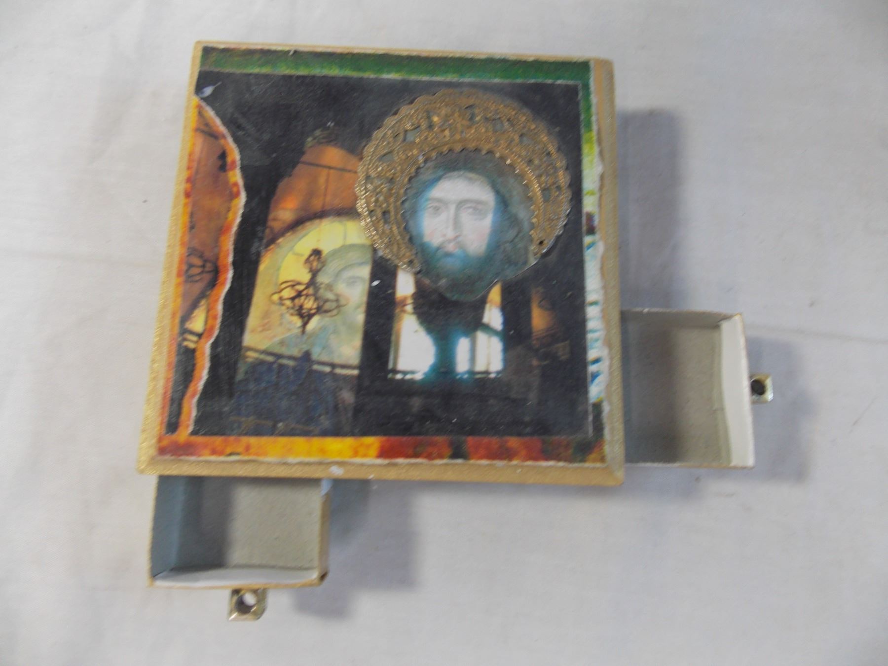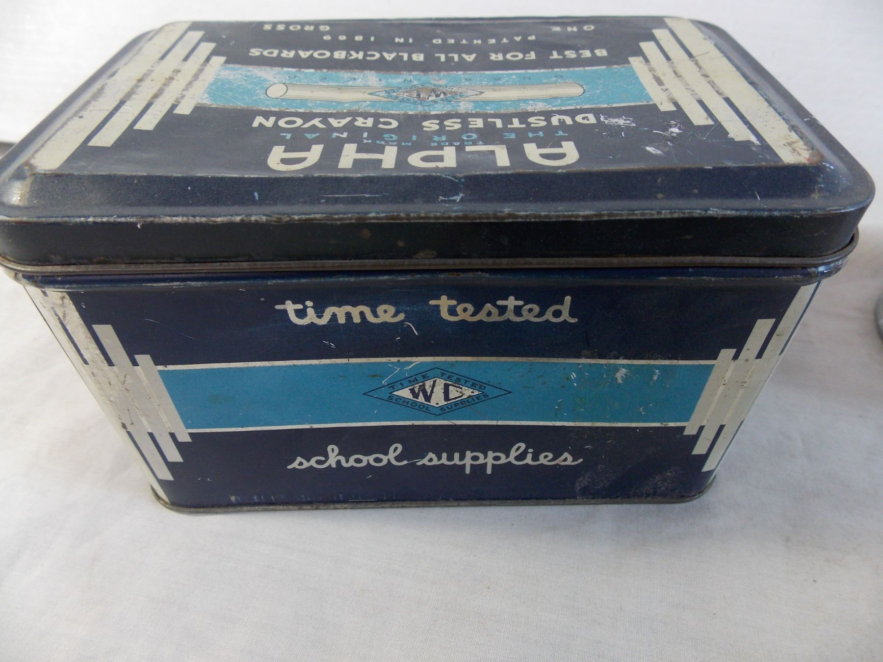 Tin Chalk container, misc containers, matchbook box