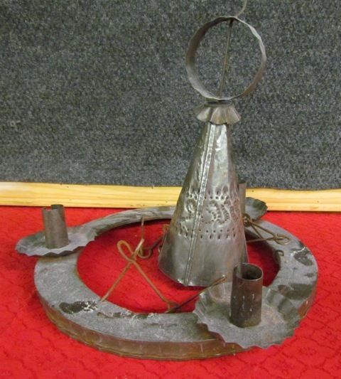 19th Century Tin chandelier w/3 Scalloped saucers and cone top
