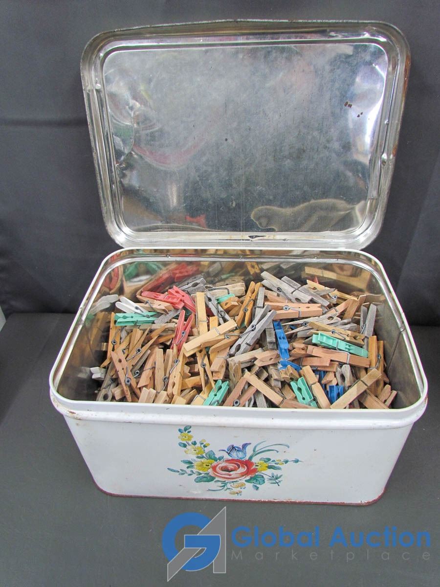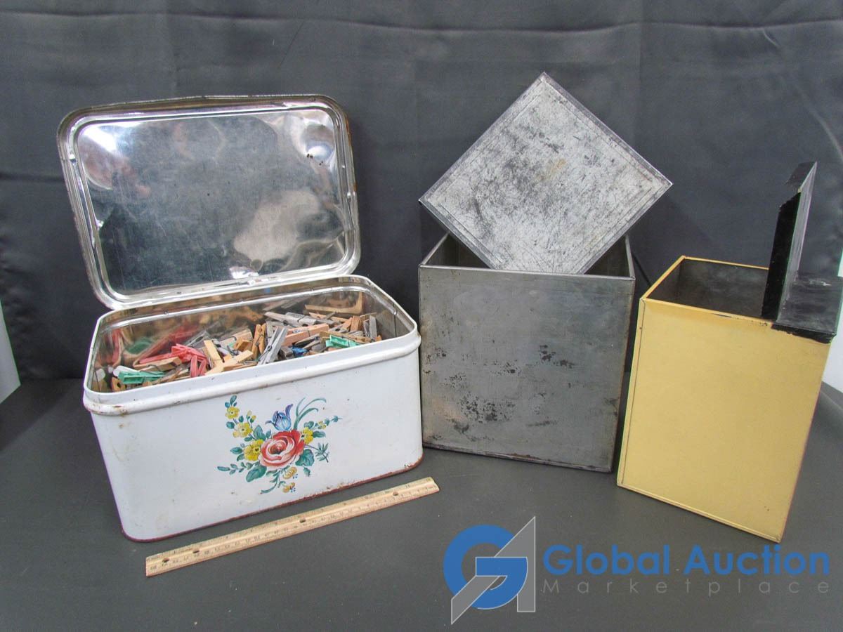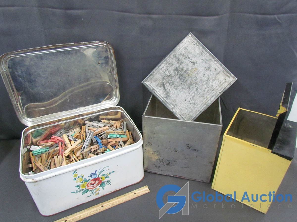 Tin Full Of Clothing Pins & 2 Tin Boxes