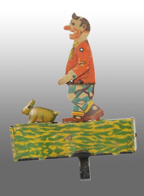 Marked "Made in Germany". When pushed, man bends down and rabbit disappears underground. Some moderate wear. Collection of Carl Lobel. Condition (Very Good - Excellent). Size 4" T.