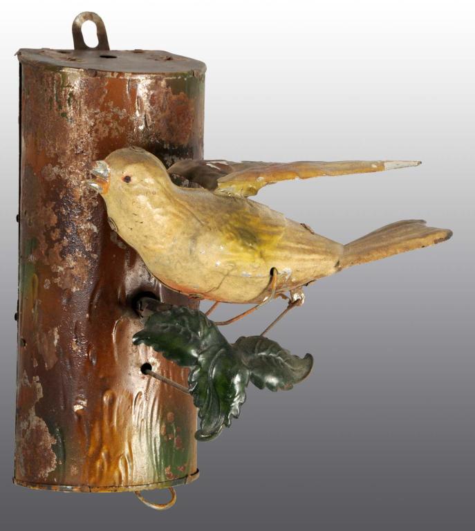 Description German. Toy has a hanger on top to  hang to wall. Operated by pulling string on bottom  and bird goes up and down. Moderate paint loss to  log and minor paint loss to bird, mostly on wings. Condition (Very Good). Size 8" L.