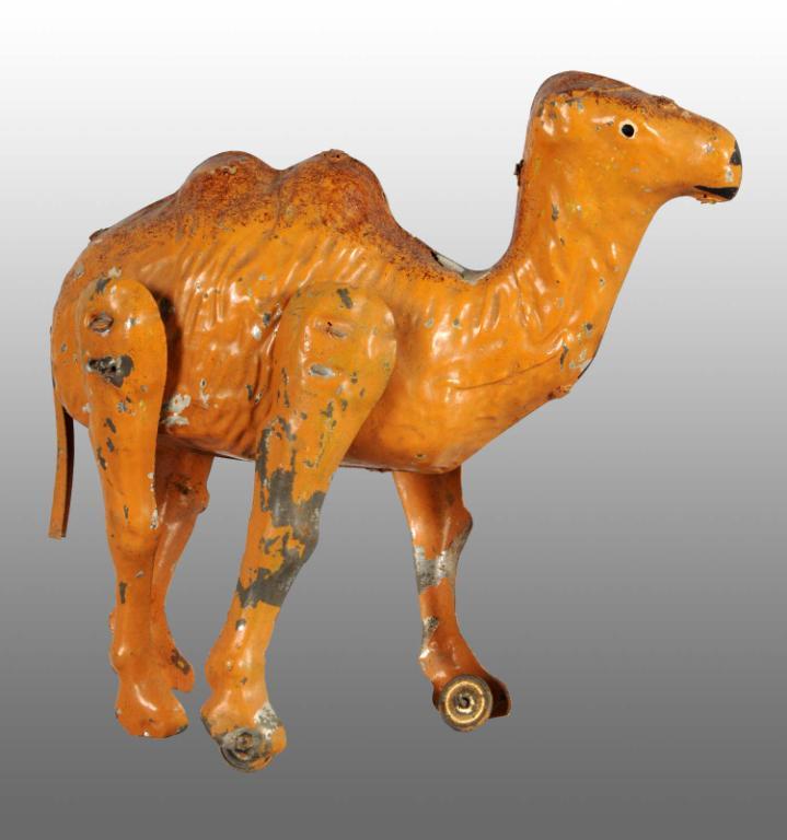 Description German. Working. When wound, camel walks. Some paint loss, especially to front legs, with small wheels attached to front legs, original tail, and slight half-inch mold crack on top of neck. Condition (Very Good - Excellent). Size 6" L.