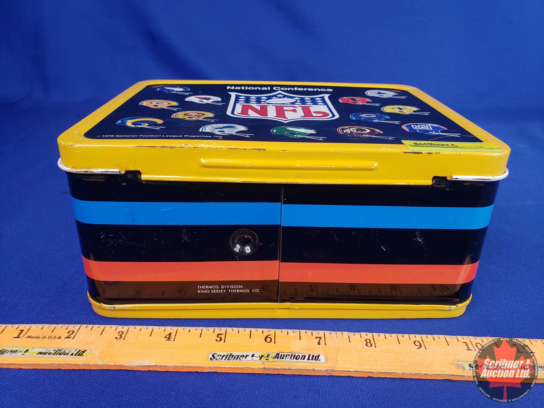 Tin Lunch Box "American Conference NFL" (c.1975) (7-1/4"H x 9"W x 4"D) (SEE PICS!)