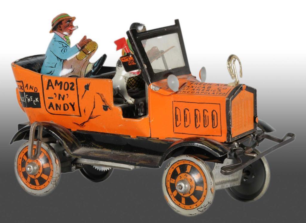 Description American. Working. Appears to be all original, including horseshoe, crank, and celluloid windshield. Front bumper is slightly bent with some wear to tires. Includes box with one laser copy flap, tears, and repairs. Condition Toy (Excellent) Box (Good). Size 8" L.