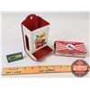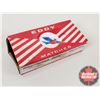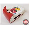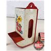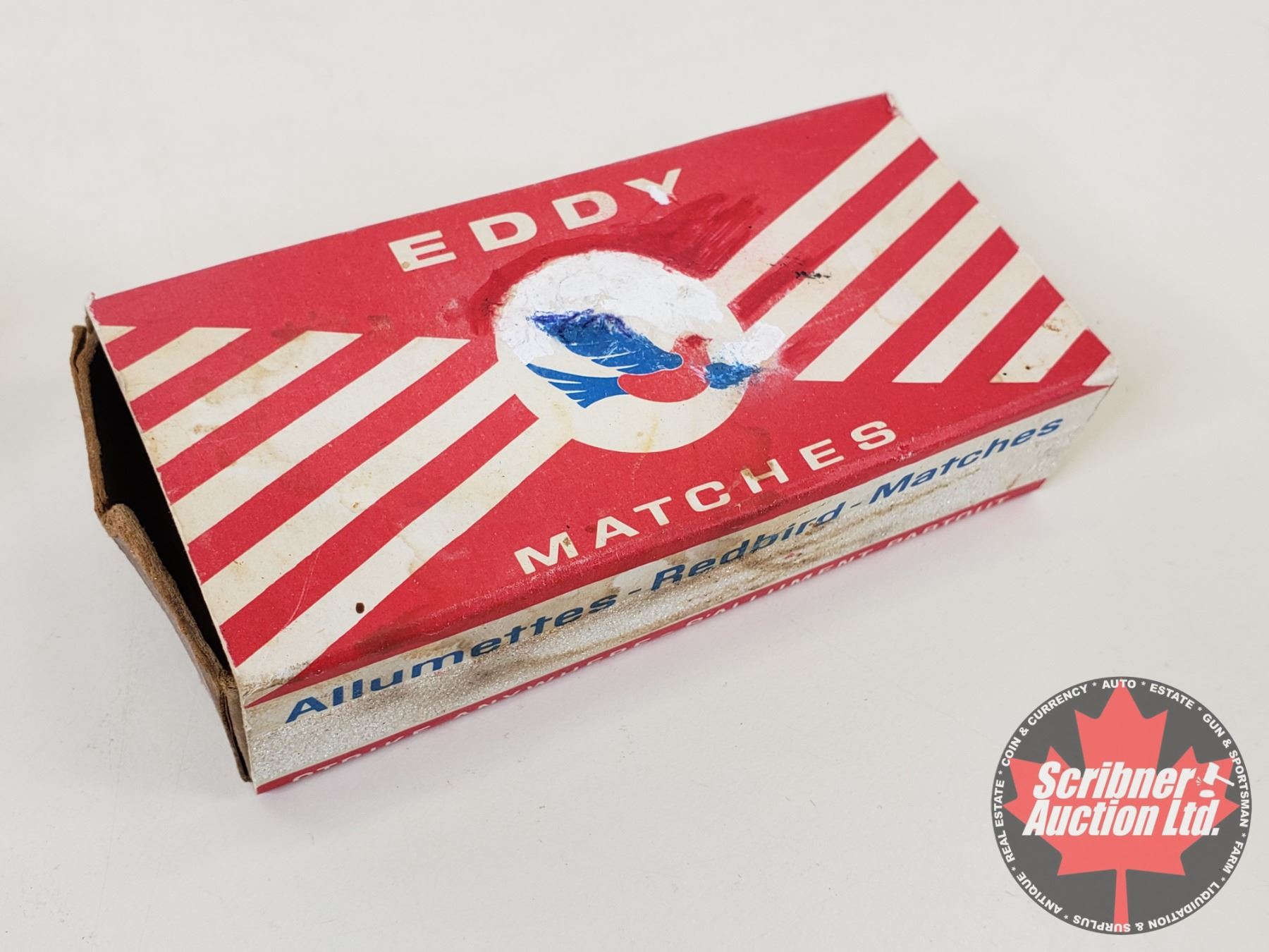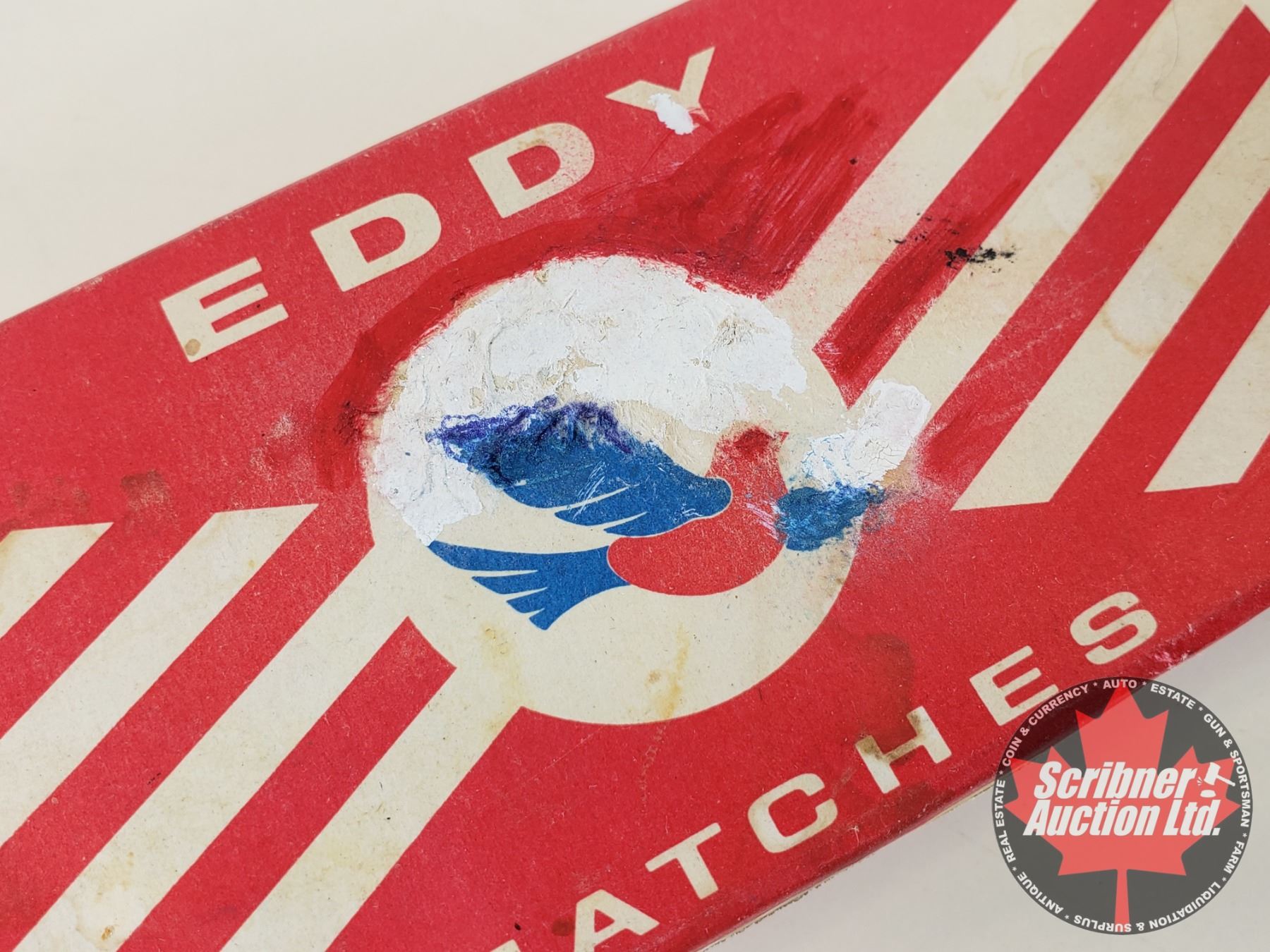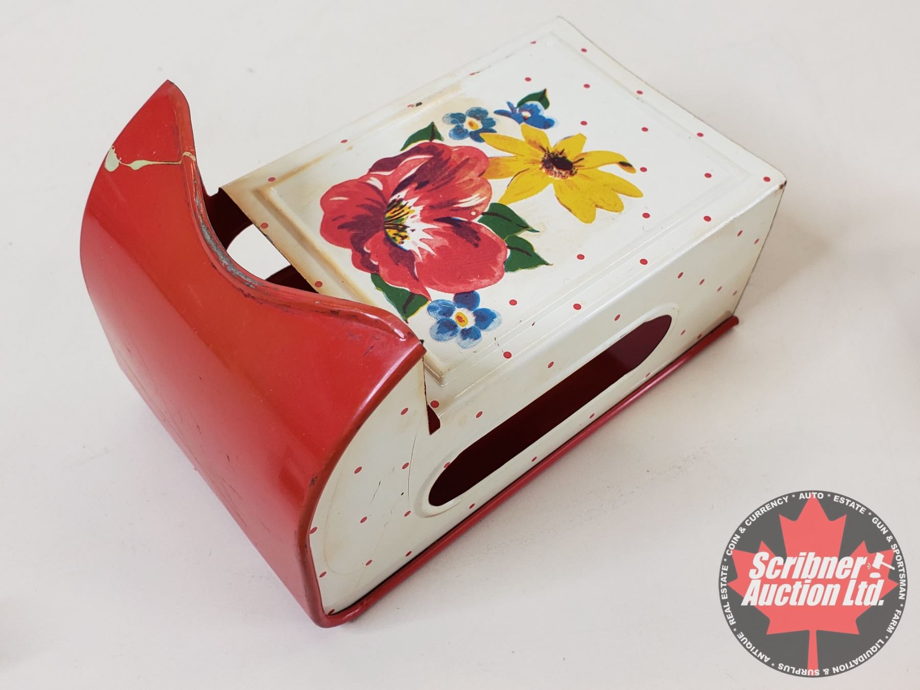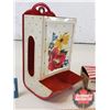 Tin Match Box Holder (Red/Whit) (Floral Motif) with "EDDY" Empty Match Box (6"H x 3"W x 3-1/4"D) (SEE PICS!)