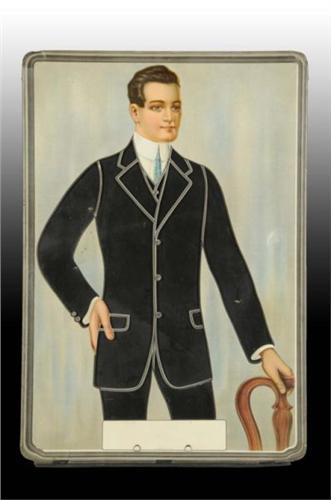 Description Circa 1910. Back panel slides open and any color or pattern can be inserted for the pants and sports coat. Only minor marks, edge bends and scratches with overall wear. Condition (7.5, Very Good). Size 19" x 27".