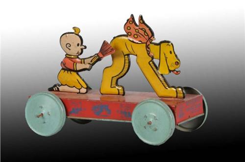 Description Marked "Nifty" on rear. Buttercup and Spare Ribs copyright by Jimmy Murphy. Buttercups right arm holding the holding broom and head of dog are both articulated. Nice lithography around base. Moderate overall wear. Condition (Very Good). Size 8" L.