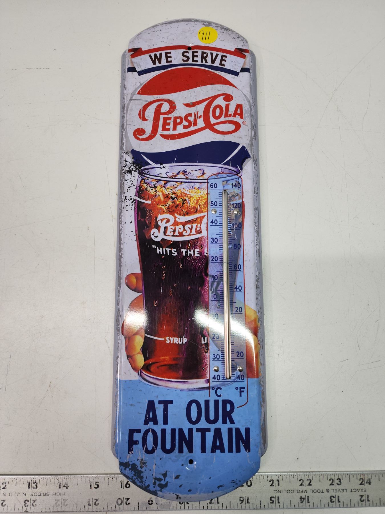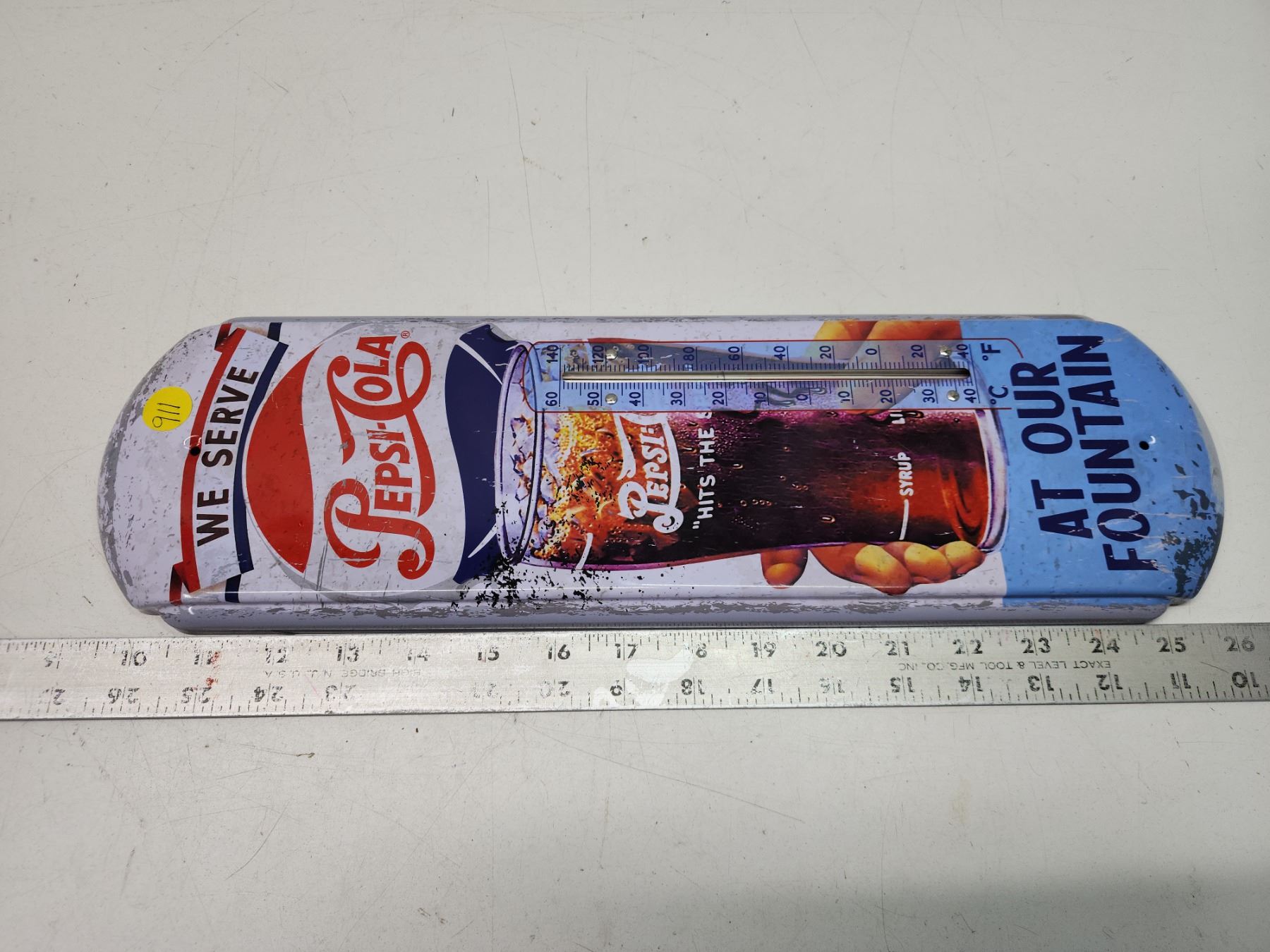 Tin Pepsi-Cola thermometer