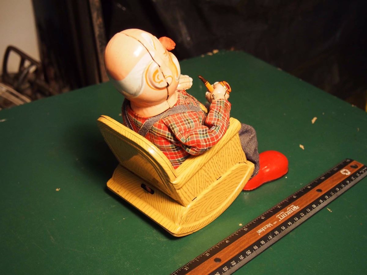 Tin Rocking And Smoking Grandpa Toy, Japan, Battery Op, (RC 7.23 K, July 1920)