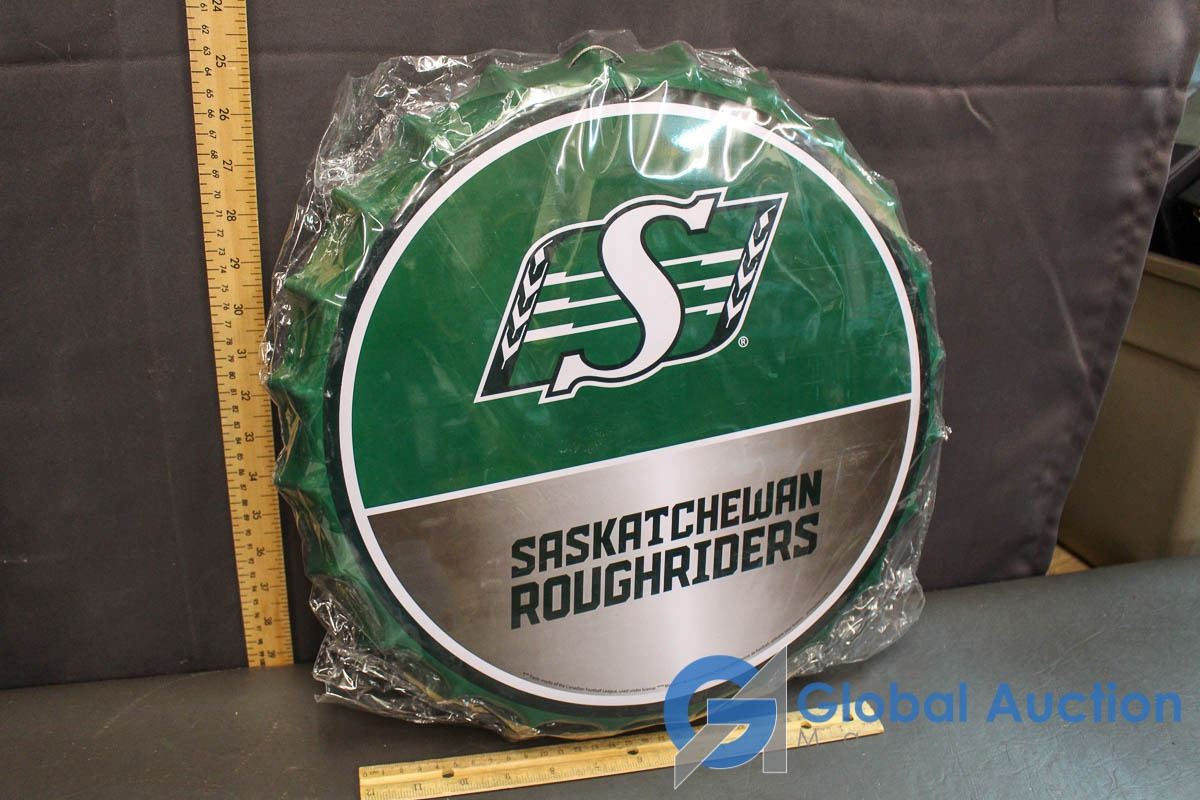 Tin Saskachewan Rough Riders Bottle Cap Sign (16"Wide)