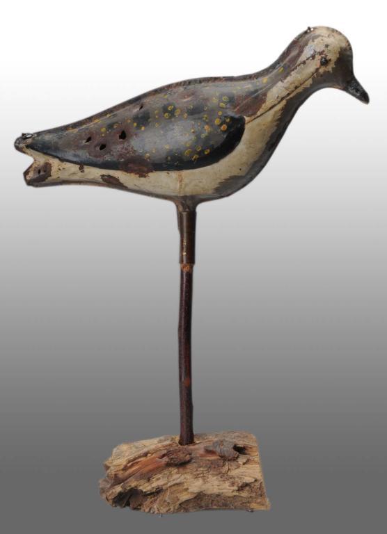 Description Six small bullet holes on one side. Sits on wooden base. Condition (Excellent). Size 9 - 1/2" L.
