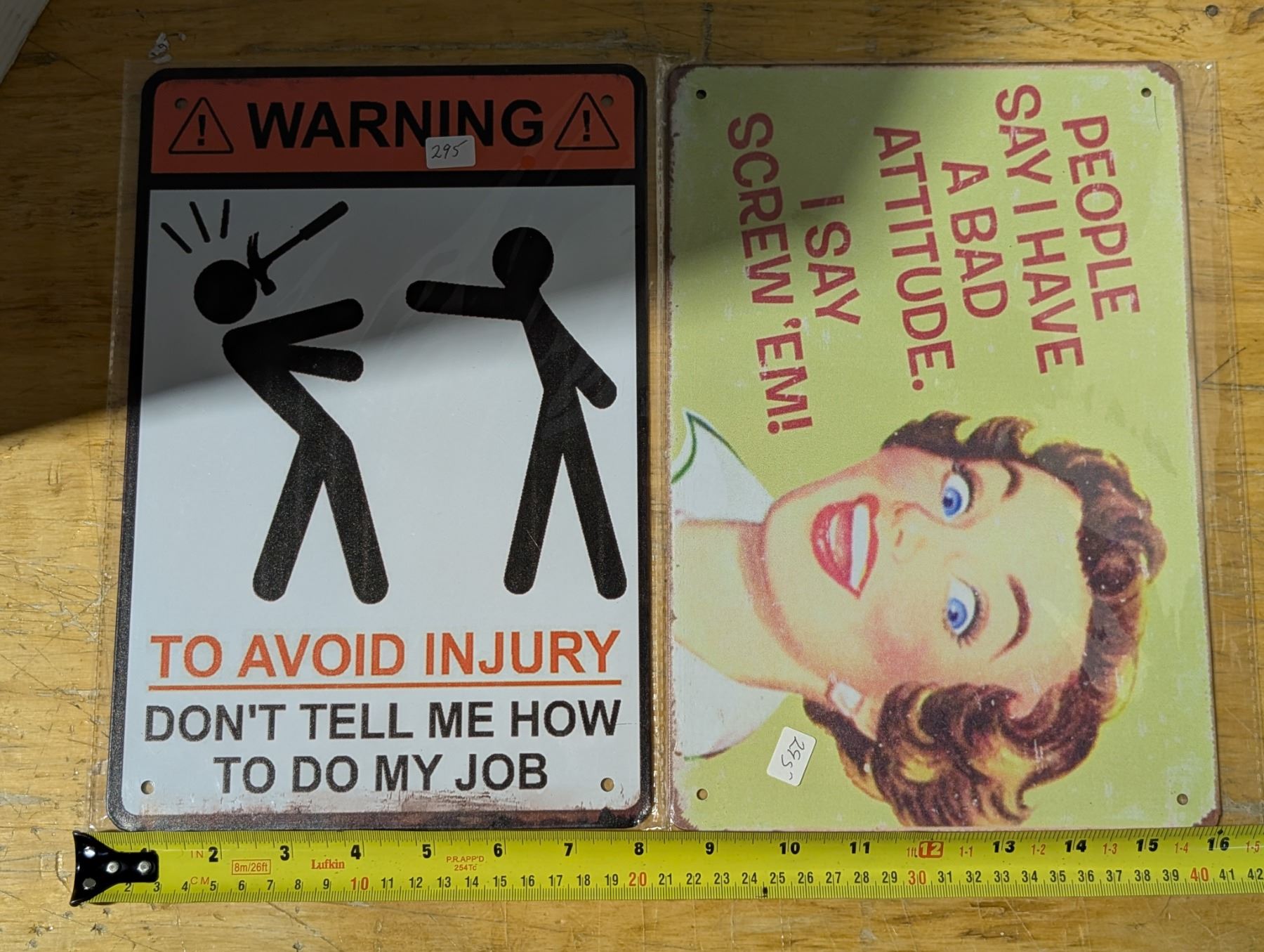 Tin Sign Aproxx. 8"x11 3/4" WARNING + BAD DAY