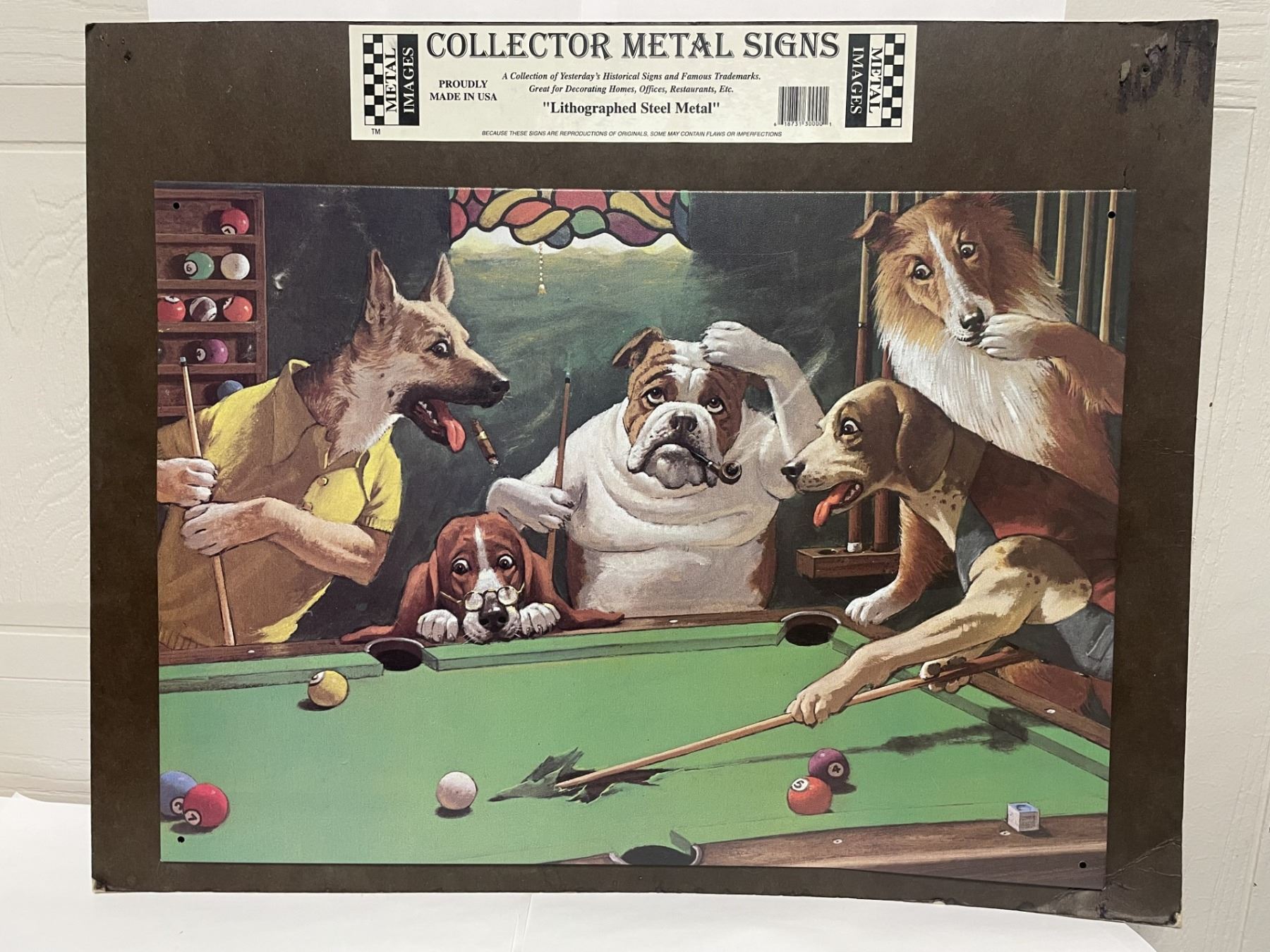 Tin Sign Dogs Playing Pool , 12.5" x 17.25"