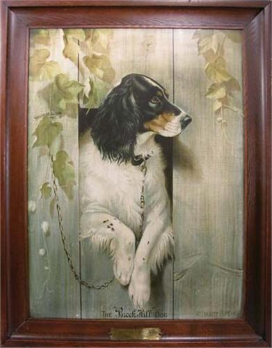 Tin sign Friedman, Keiler & Co. Distillers, Paducah, KY, 46.5" x 36.5", "Brook Hill Dog" Alexander Pope II, artist. Ex. cond.