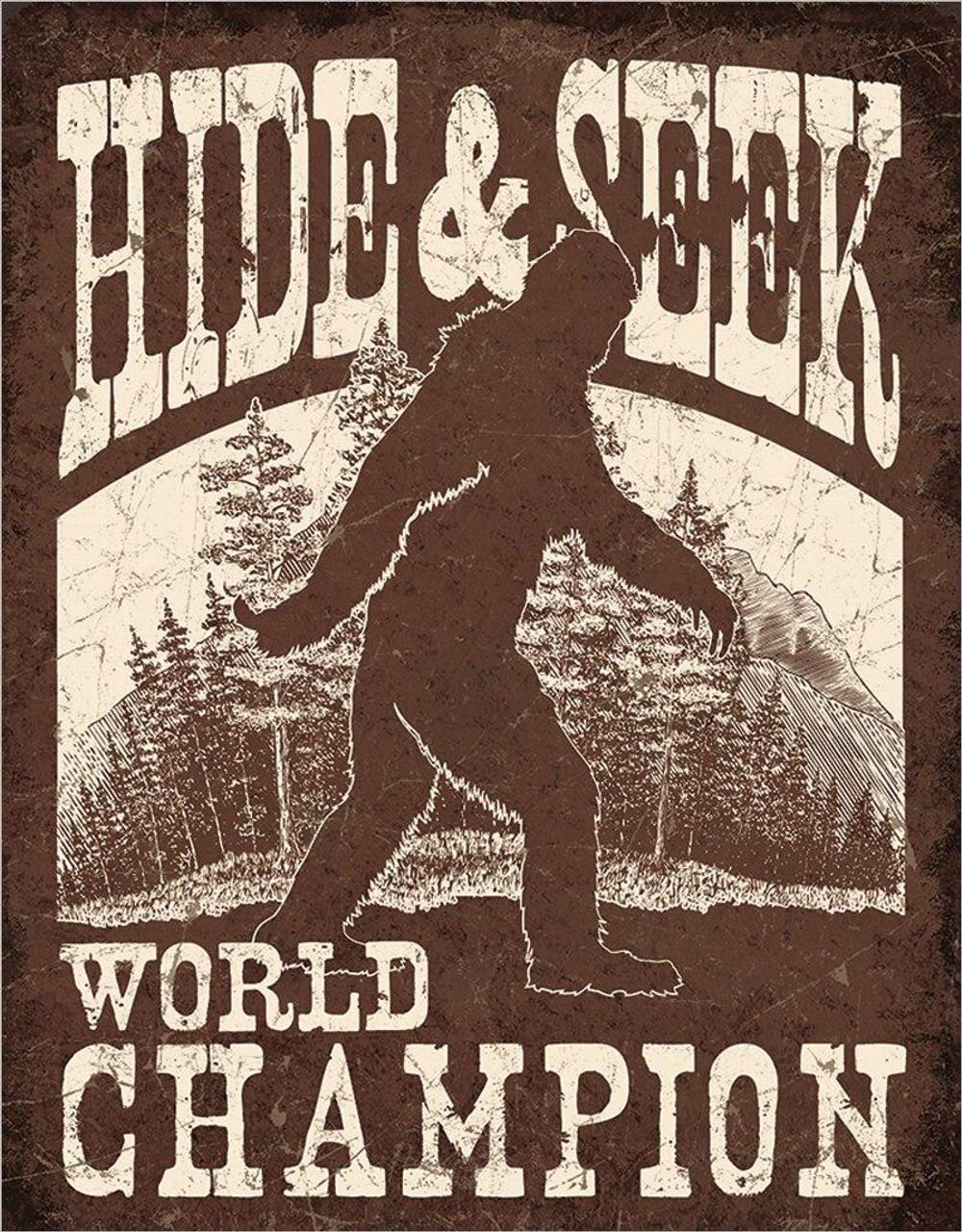 Tin Sign - Hide & Seek World Champion - Sasquatch - NEW 16" x 12.5"