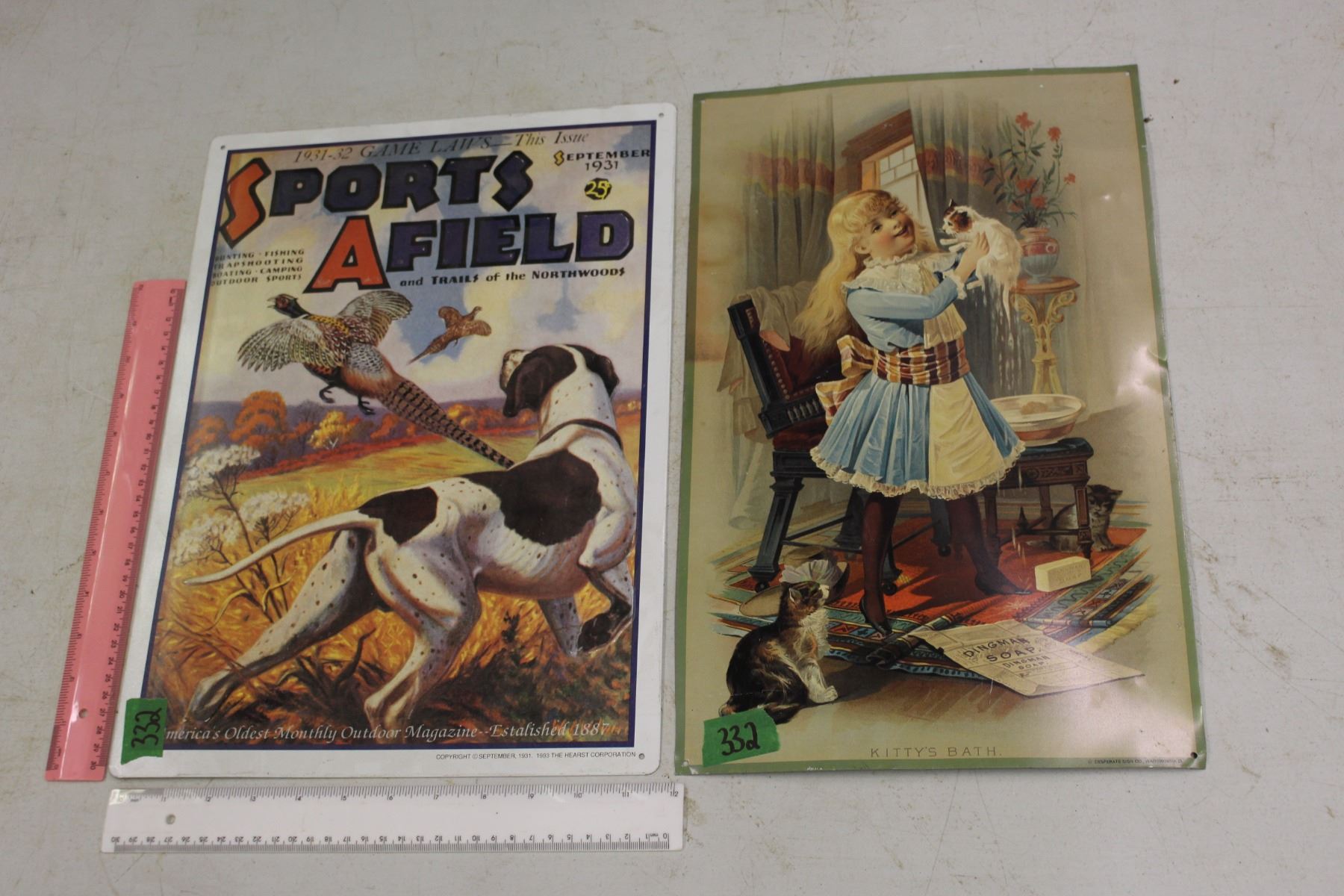 Tin Signs (2)(Sports&Afield and Dingman Soap A Kitty's Bath)