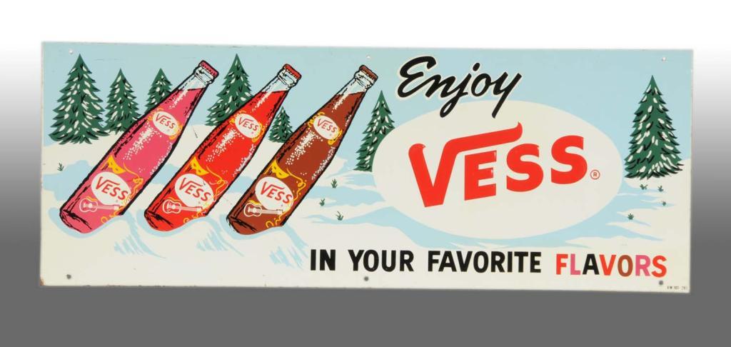 Strong image depicting three different Vess Beverage flavors in a snow bank. Holes have been added for mounting. Condition (8.0 - 8.5, Excellent). Size 11 - 3/4" x 30".