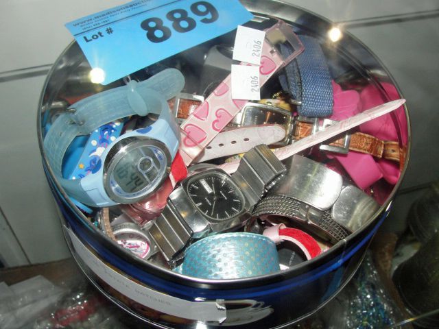 Tin filled with assorted watches