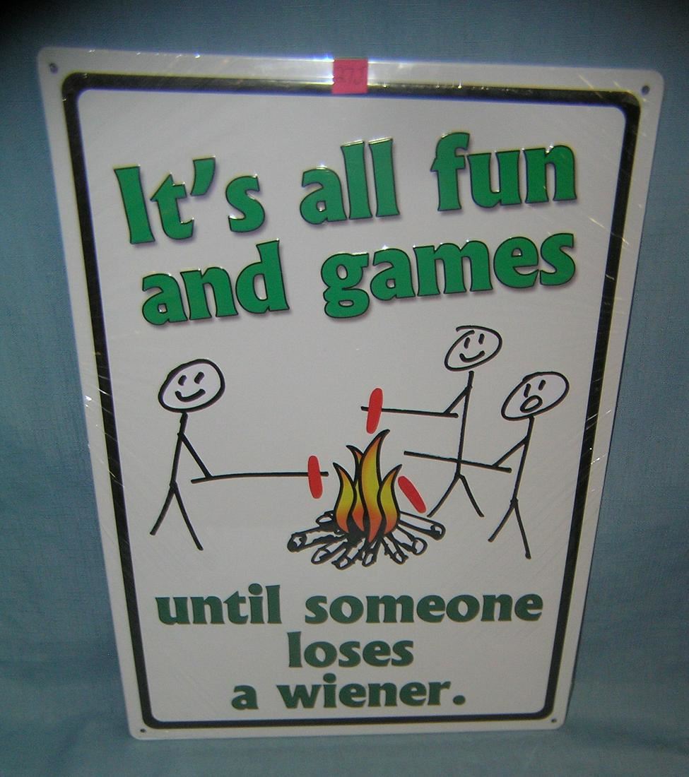 All tin fun and games until some one loses a weiner sign est. value $40.00-$50.00