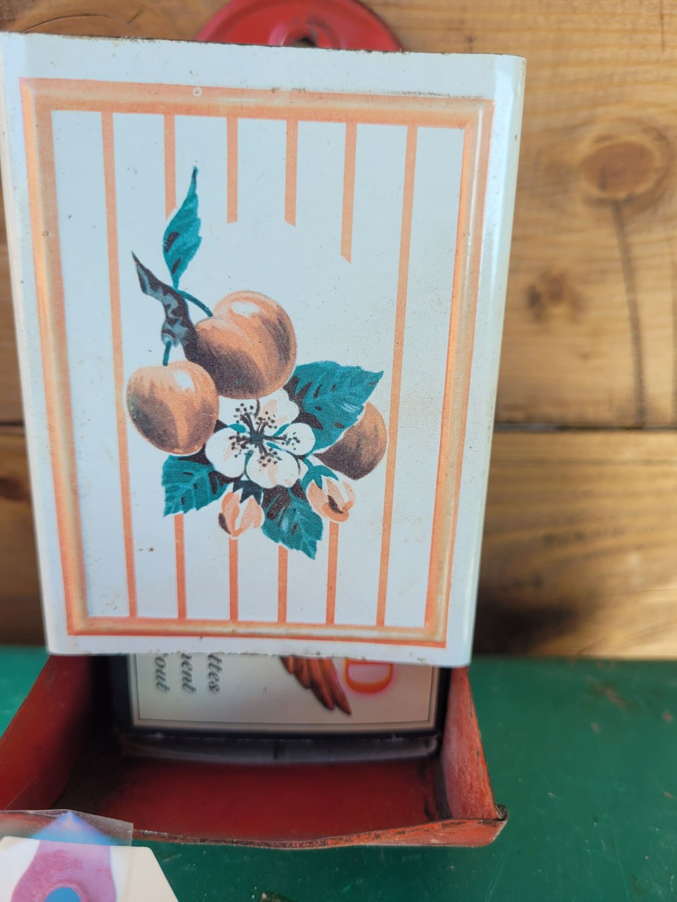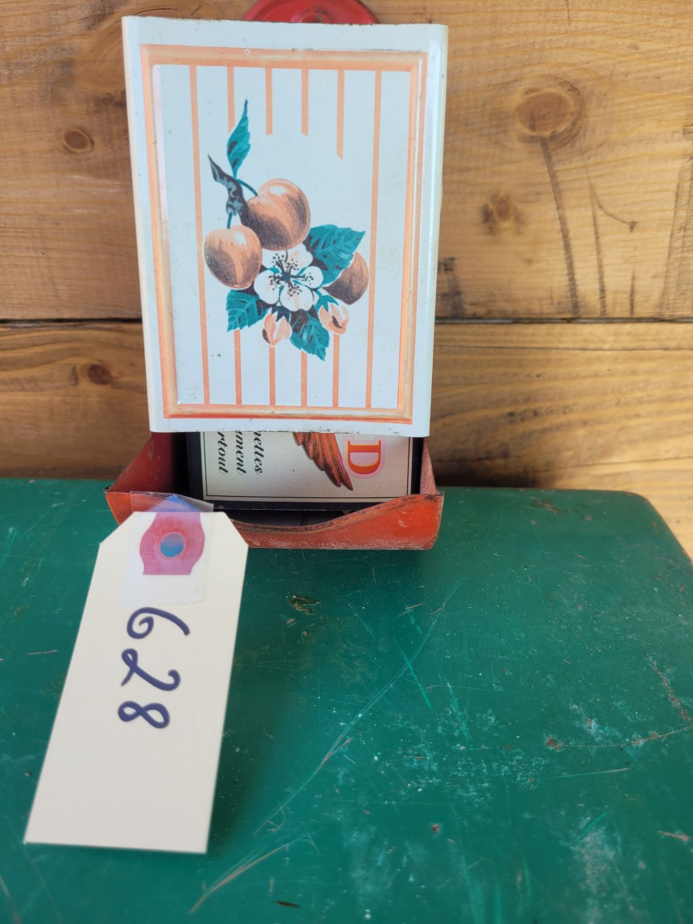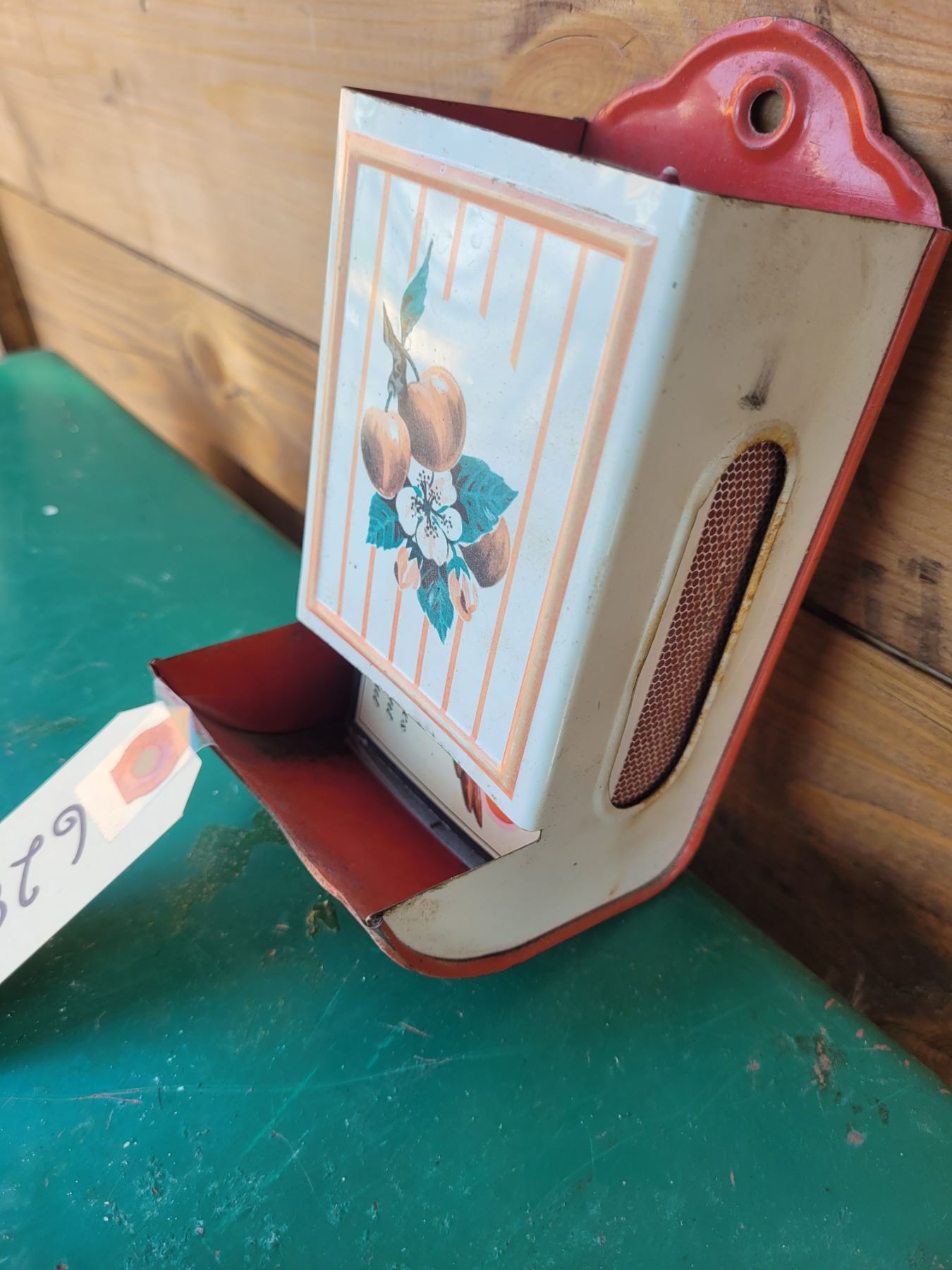 Tin match safe, excellent paint - originally from P.A. Hardware
