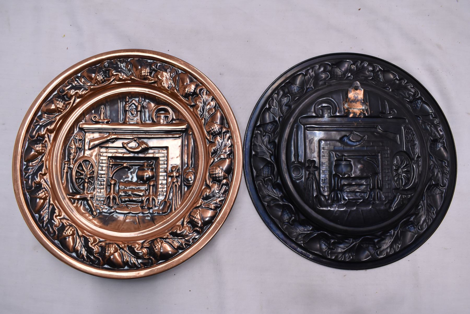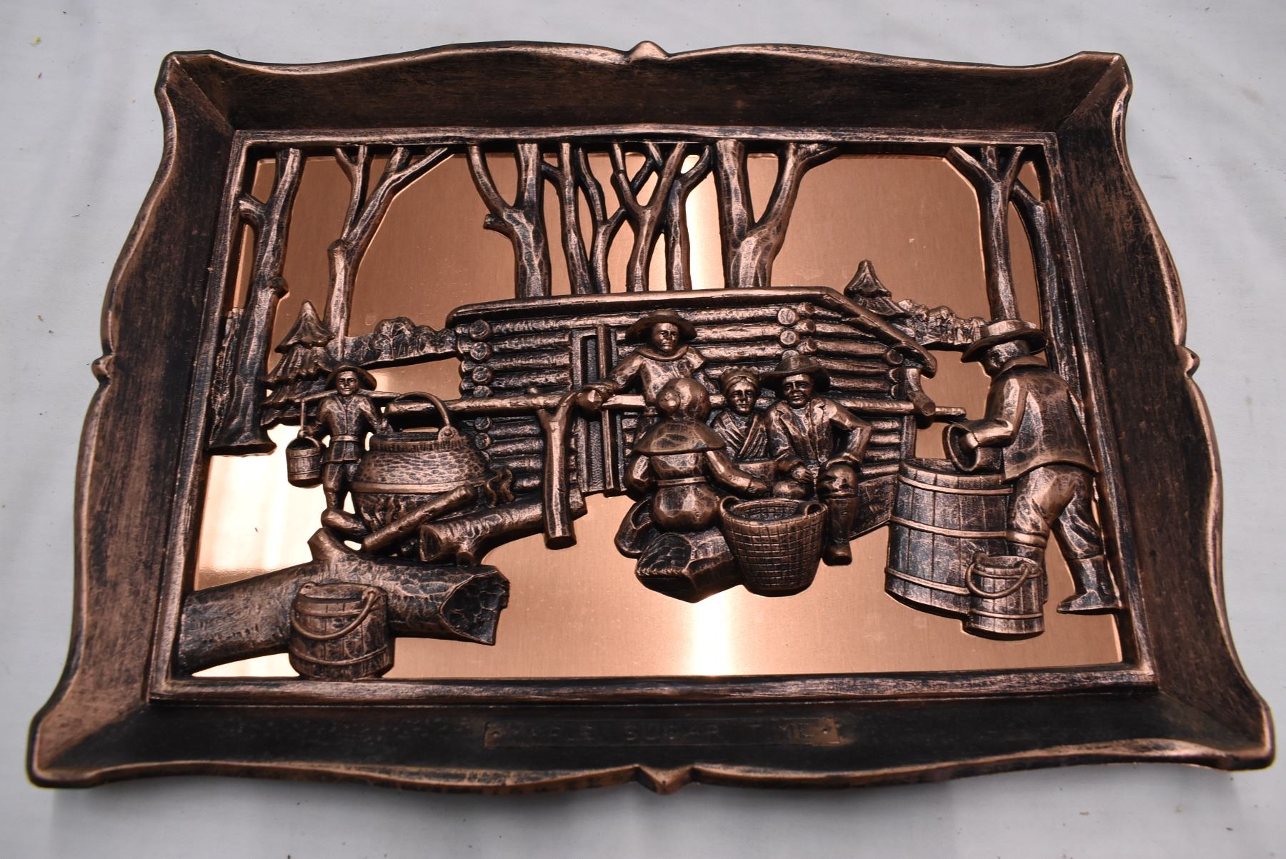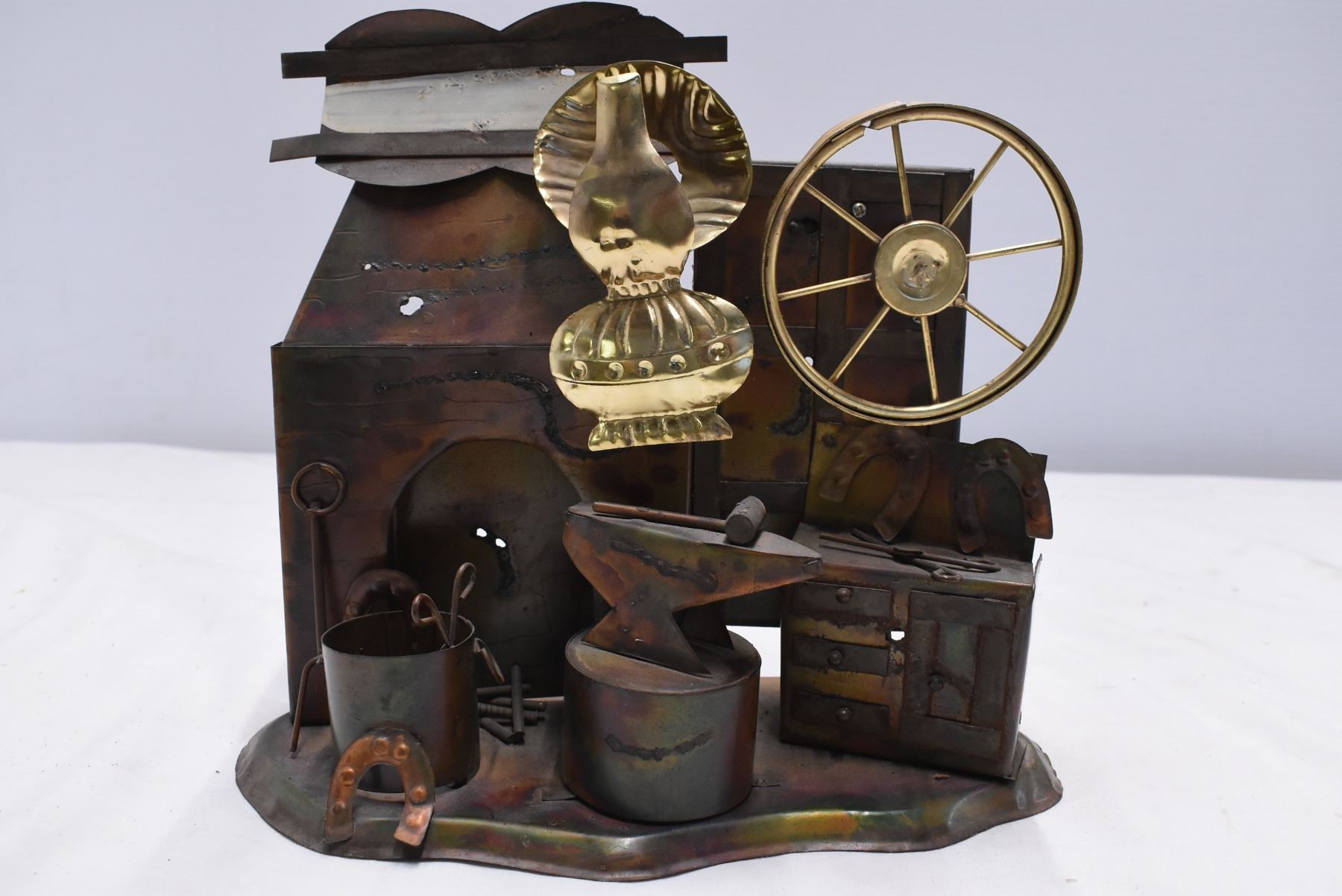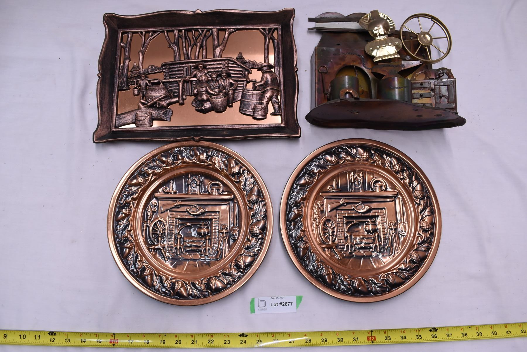 Tin picture with 2 tin plates & tin blacksmithign ornament