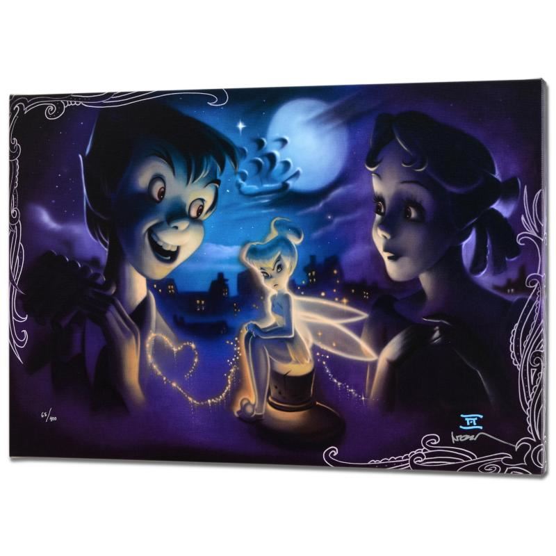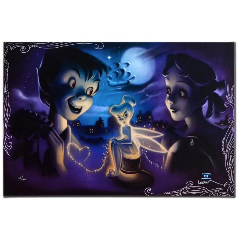 "Tink vs. Wendy" is a limited edition giclee on canvas from a sold out edition by Noah, numbered and hand signed by the artist! This piece features the Disney characters, "Tinker Bell" and "Wendy." This piece is gallery wrapped and ready to hang! Includes Certificate of Authenticity! Measures approx. 24" x 16" (image).