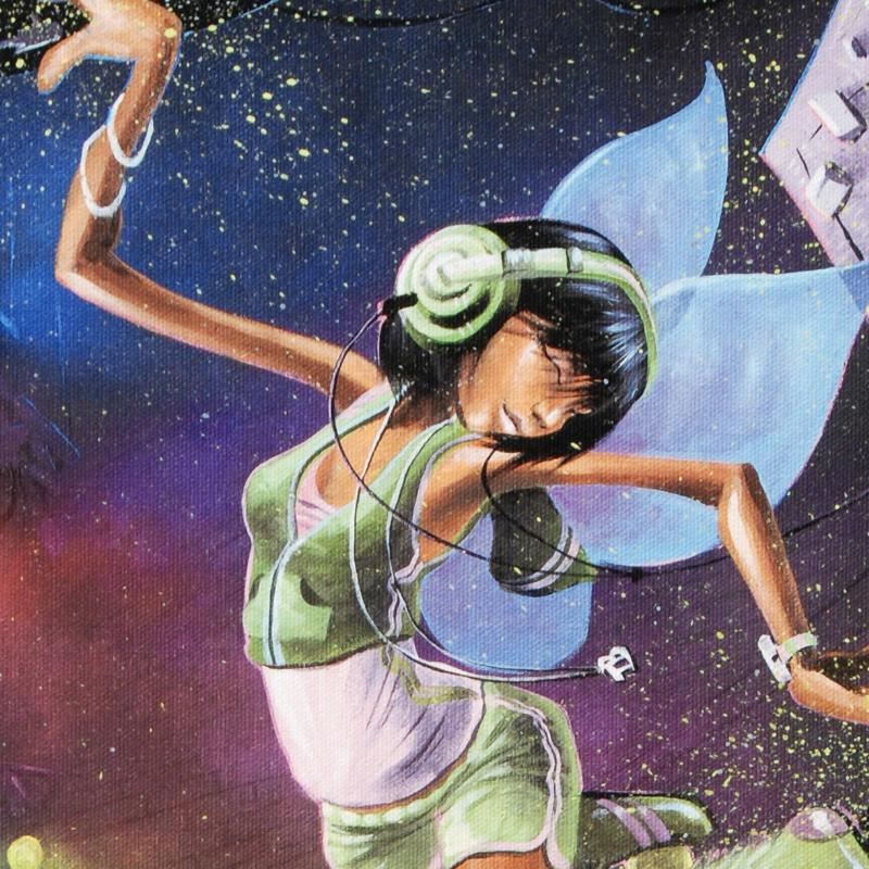 Combining his passions for music and art, David Garibaldi creates visual poetry "Tinkerbell" is a limited edition giclee on stretched canvas, E numbered and bearing the artist's authorized signature. This piece comes gallery wrapped. Includes Certificate of Authenticity! Measures approx. 27" x 36" (image).