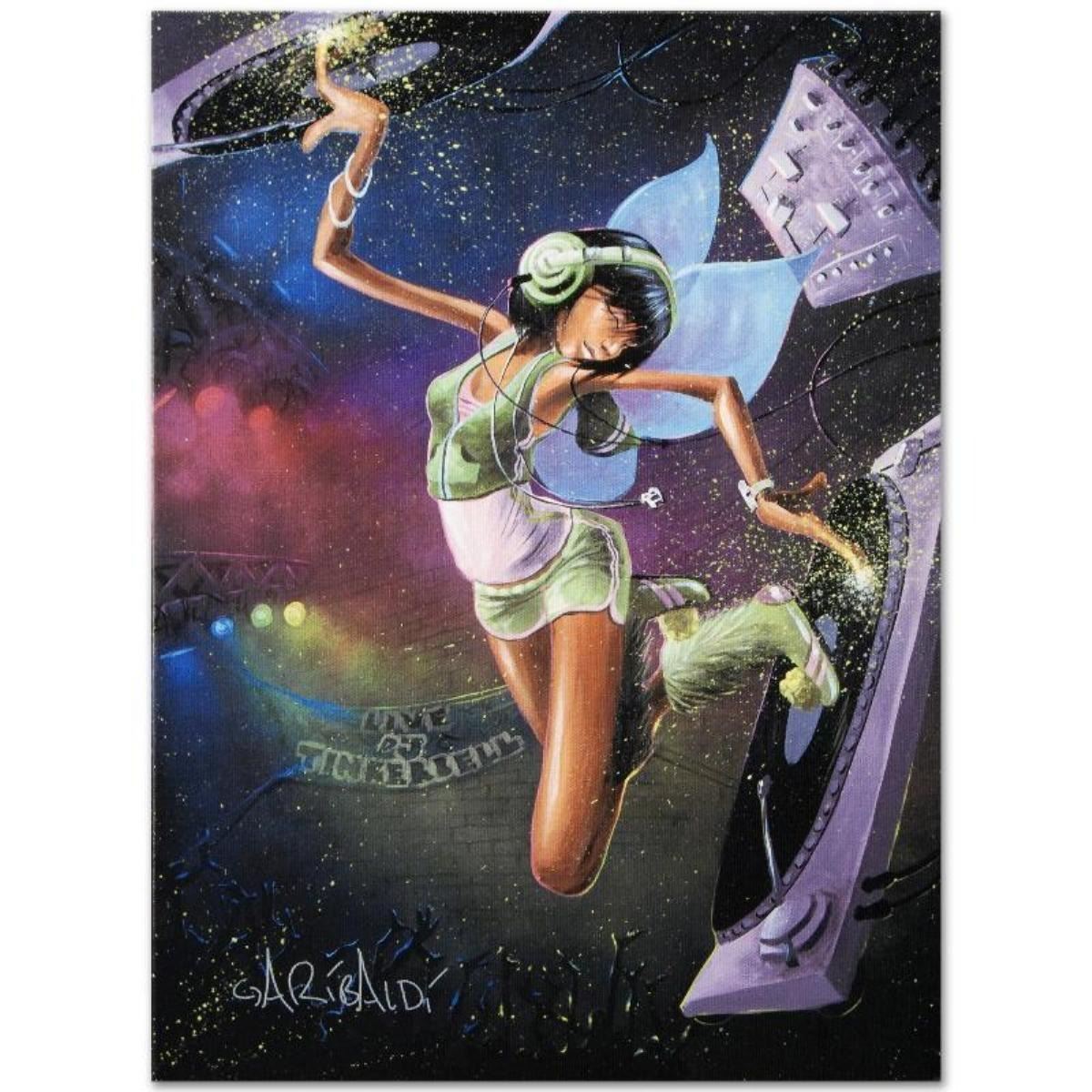 Combining his passions for music and art, David Garibaldi creates visual poetry "Tinkerbell" is a limited edition giclee on stretched canvas, CC numbered from the miniature series and bearing the artist's authorized signature. This piece comes gallery wrapped. Includes Certificate of Authenticity! Measures approx. 12" x 16" (image).