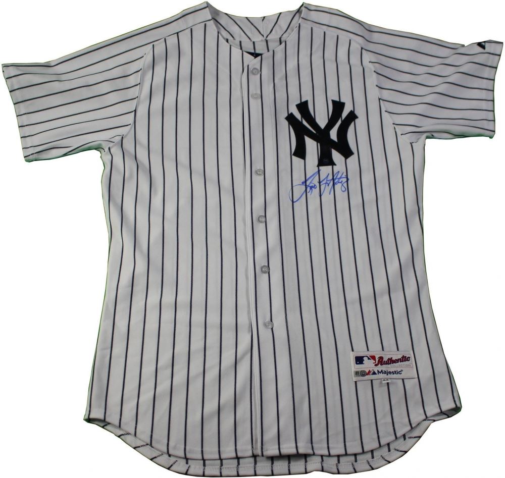 Majestic Authentic on-field style jersey, size 44. Hand-signed in blue felt-tip pen by Tino Martinez (Mariners).