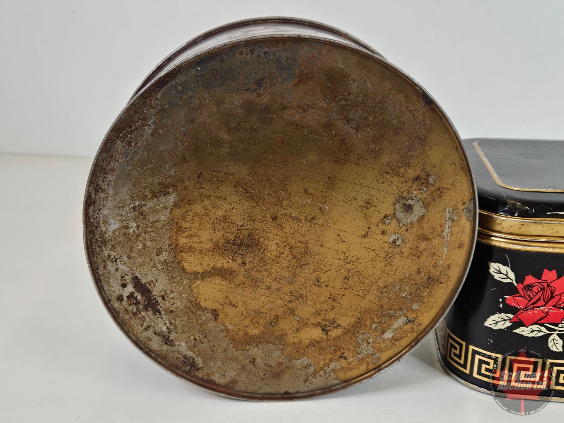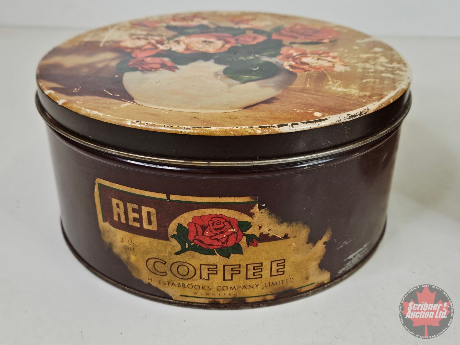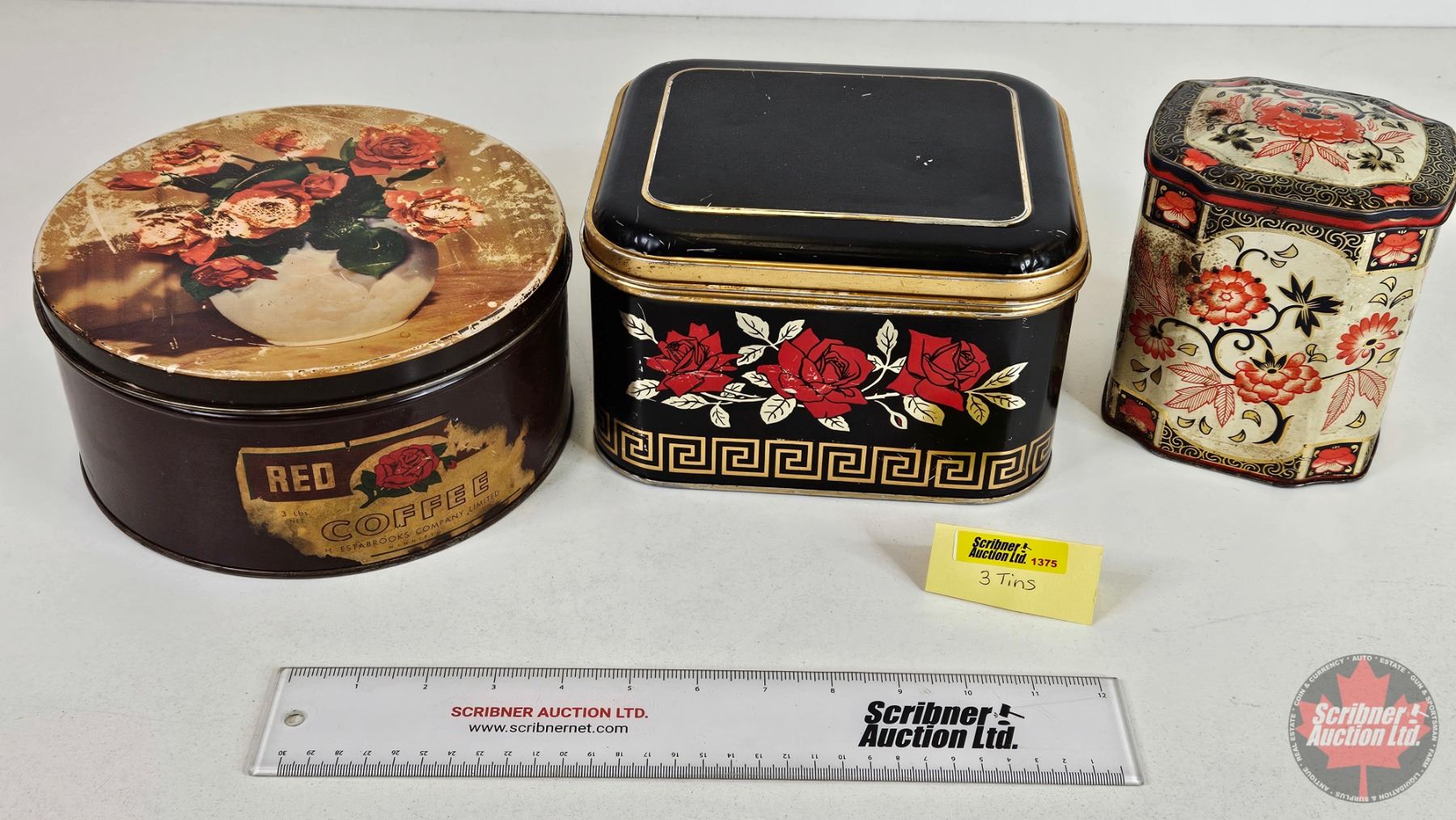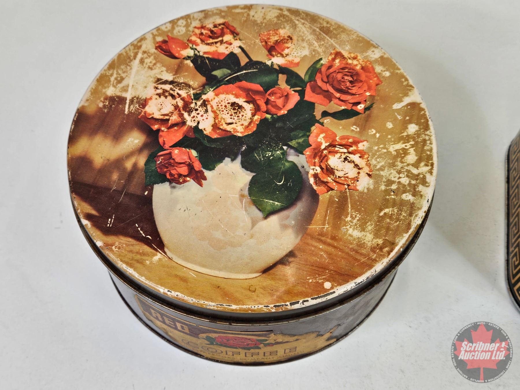 Tins (3) : RED ROSE Coffee Tin (Paper Label) + (2) Misc