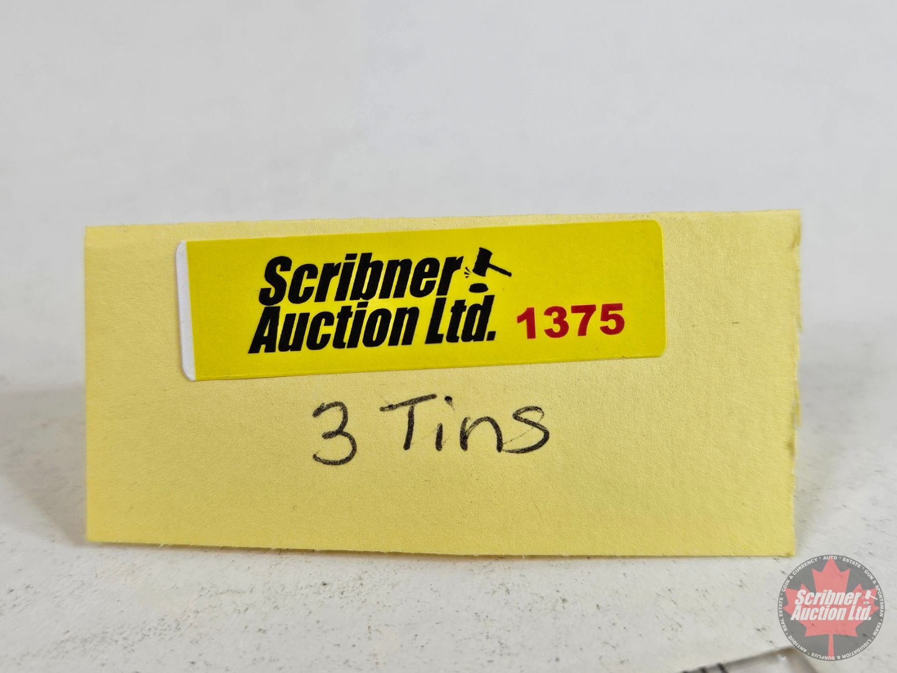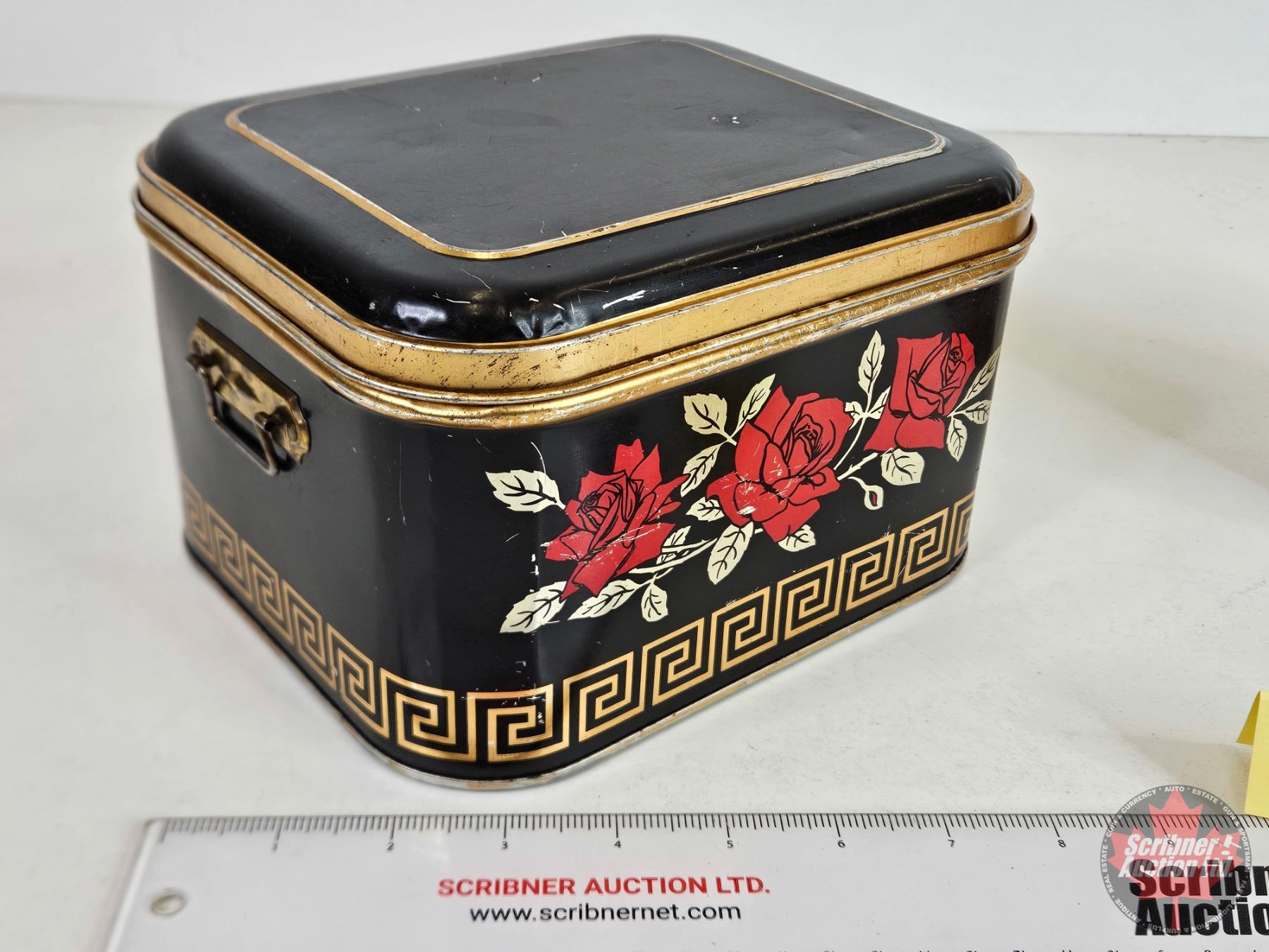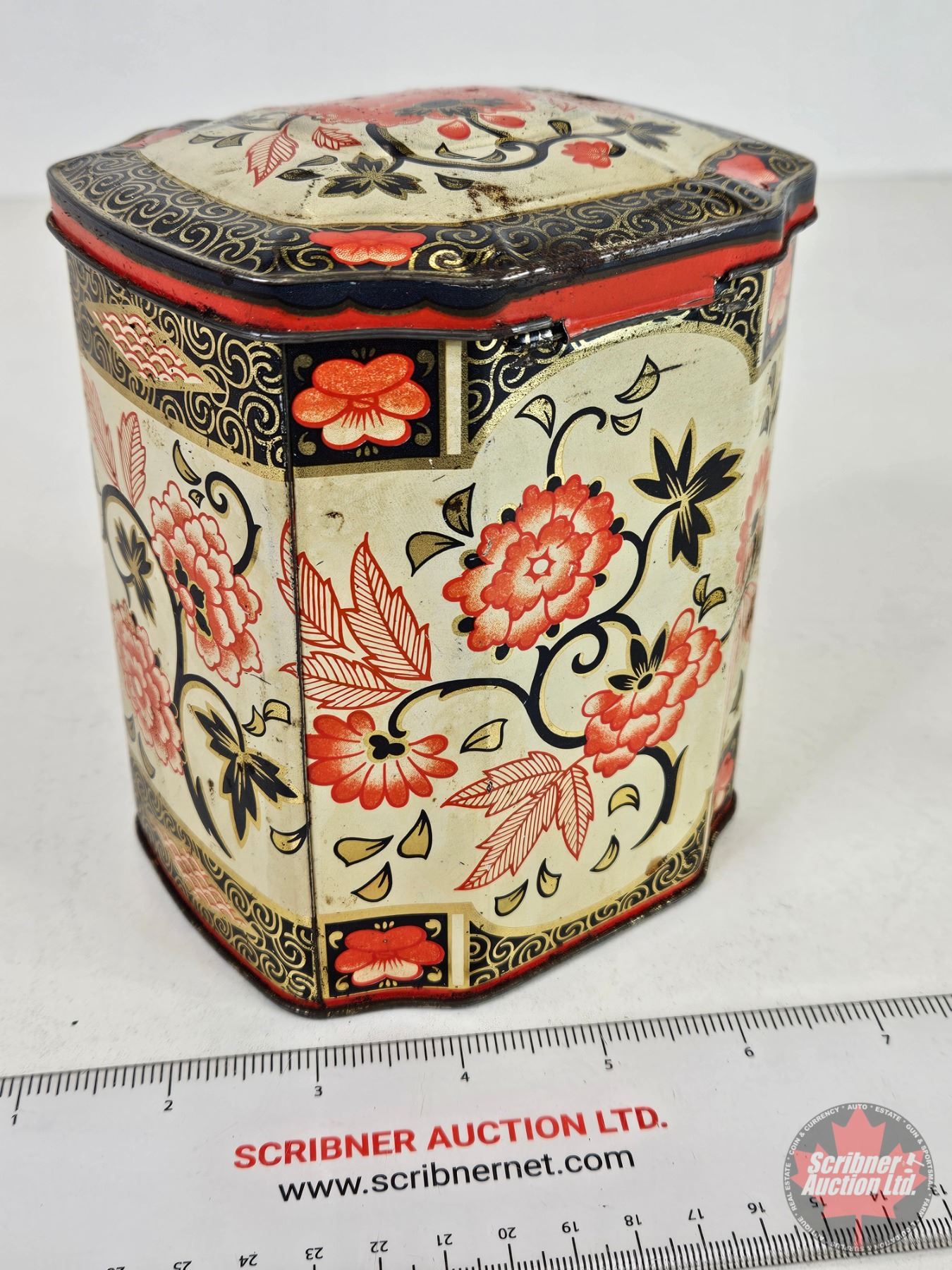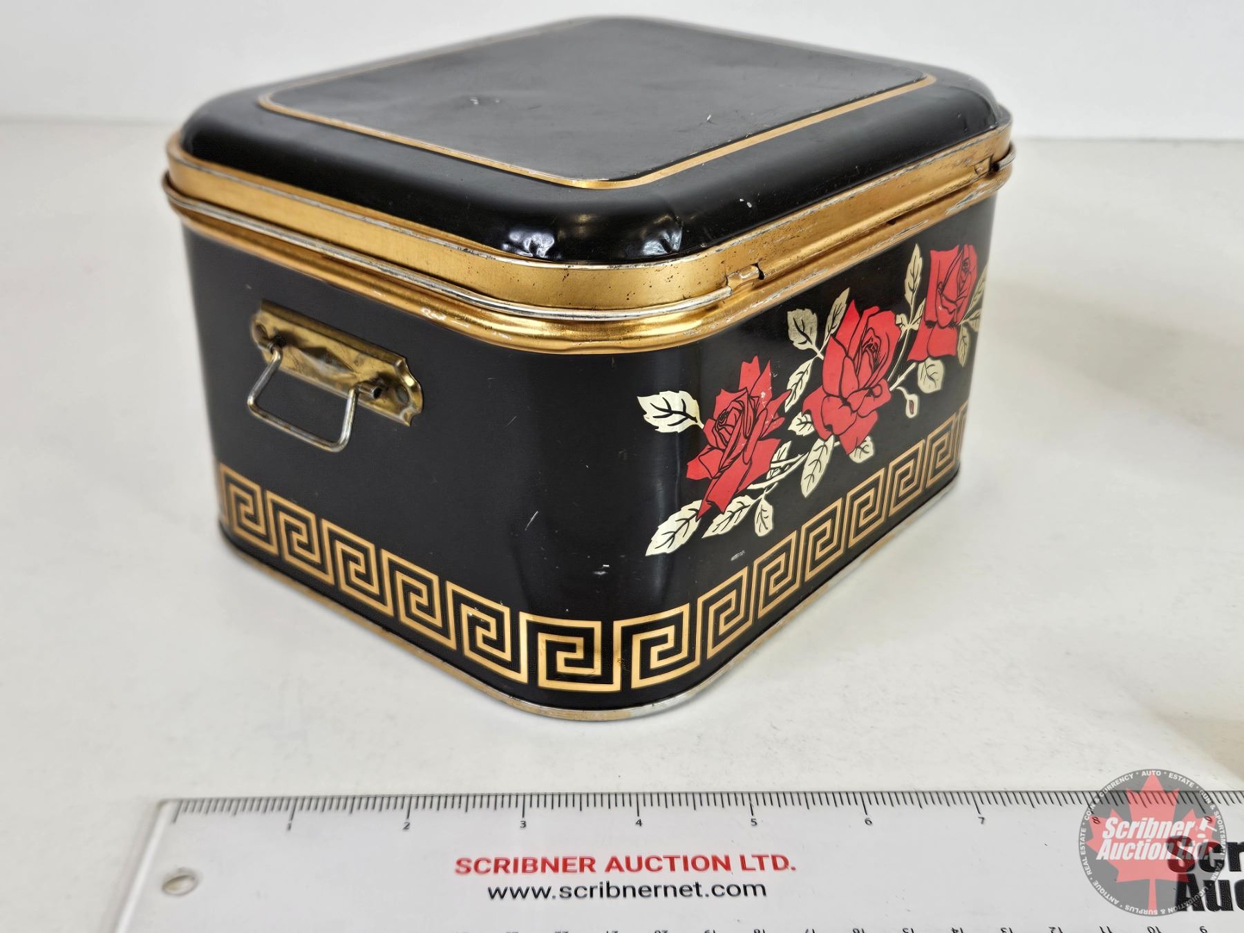 Tins (3) : RED ROSE Coffee Tin (Paper Label) + (2) Misc