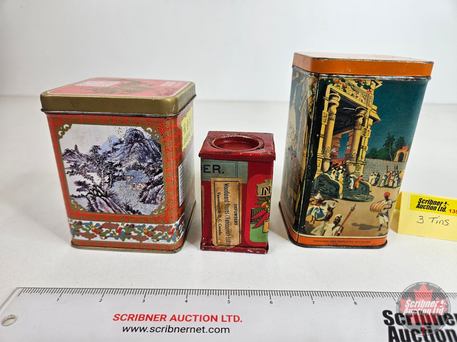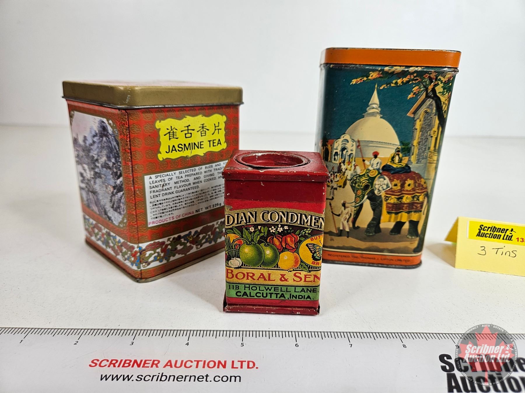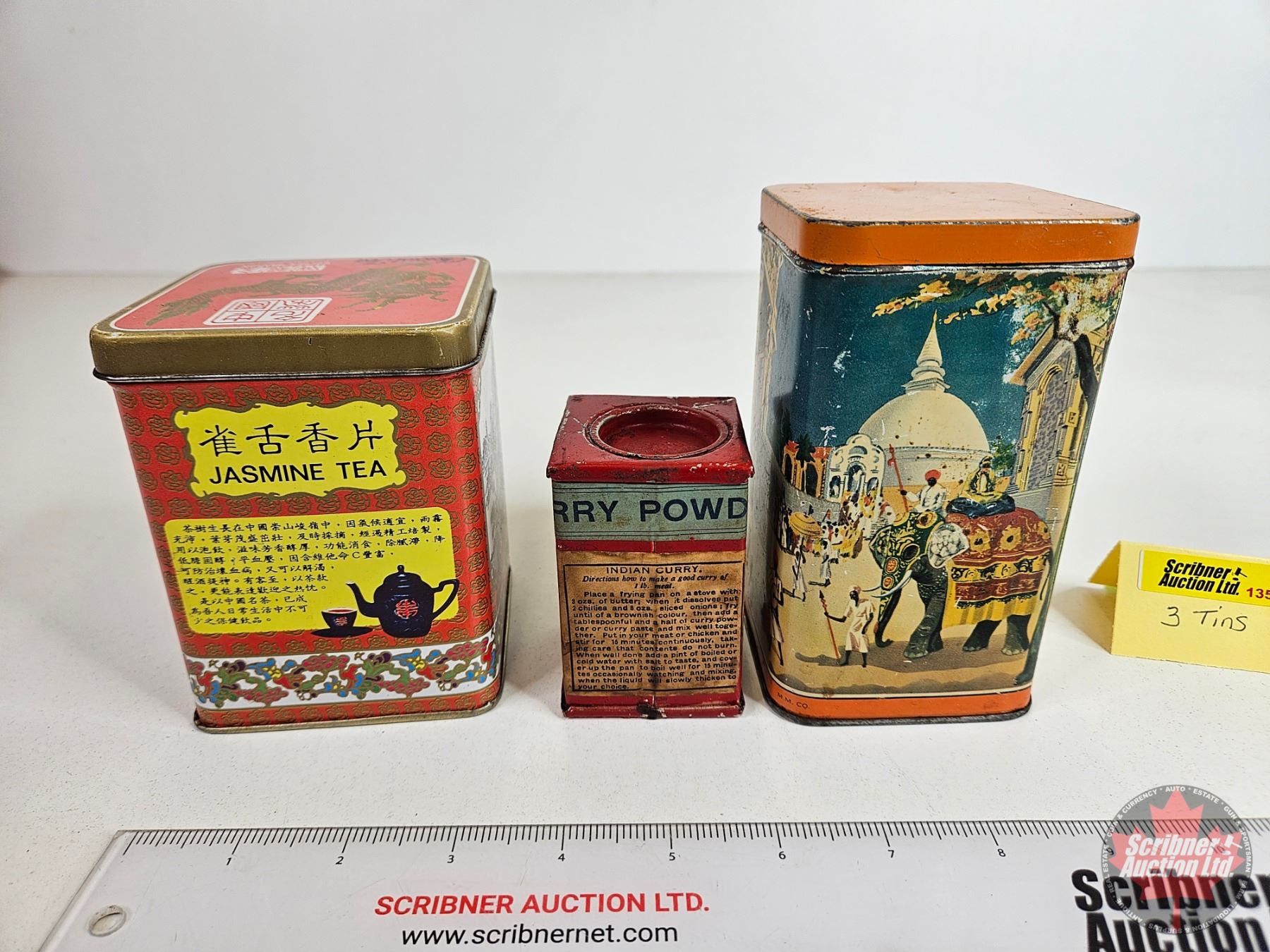 Tins (3) : Tea & Curry (Largest Measures: 5-1/2" x 3" x 3")